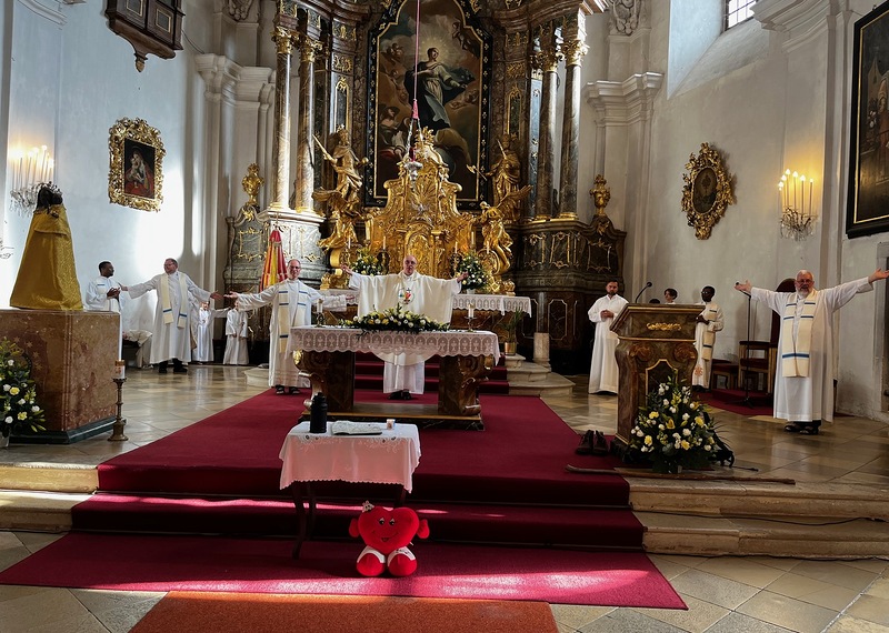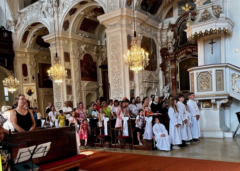 Bischof Zsifkovics begrüßte die Teilnehmenden herzlich: "Ich freue mich, dass so viele heute nach Loretto gekommen sind, obwohl ihr bei diesen Temperaturen auch im Schwimmbad sein könntet. Besonders danke ich Schwester Michaela Siffert, die seit 45 Jahren Patin dieser Wallfahrt ist." Als Zeichen des Dankes überreichte er Schwester Michaela eine Ikone des heiligen Martin. Gemeinsam mit ihrer inzwischen verstorbenen Schwester Magdalena hatte sie 1981 die Initiative zur Kinderwallfahrt ins Leben gerufen.