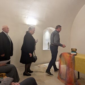 Zum Ausklang gab es bei Brot und Wein Gelegenheit, mit anderen Teilnehmenden sowie der Referentin Franziska Klein ins Gespräch zu kommen. Der Austausch in entspannter Runde rundete den Abend ab und ließ viele die gewonnenen Impulse in gemeinschaftlicher Atmosphäre vertiefen.