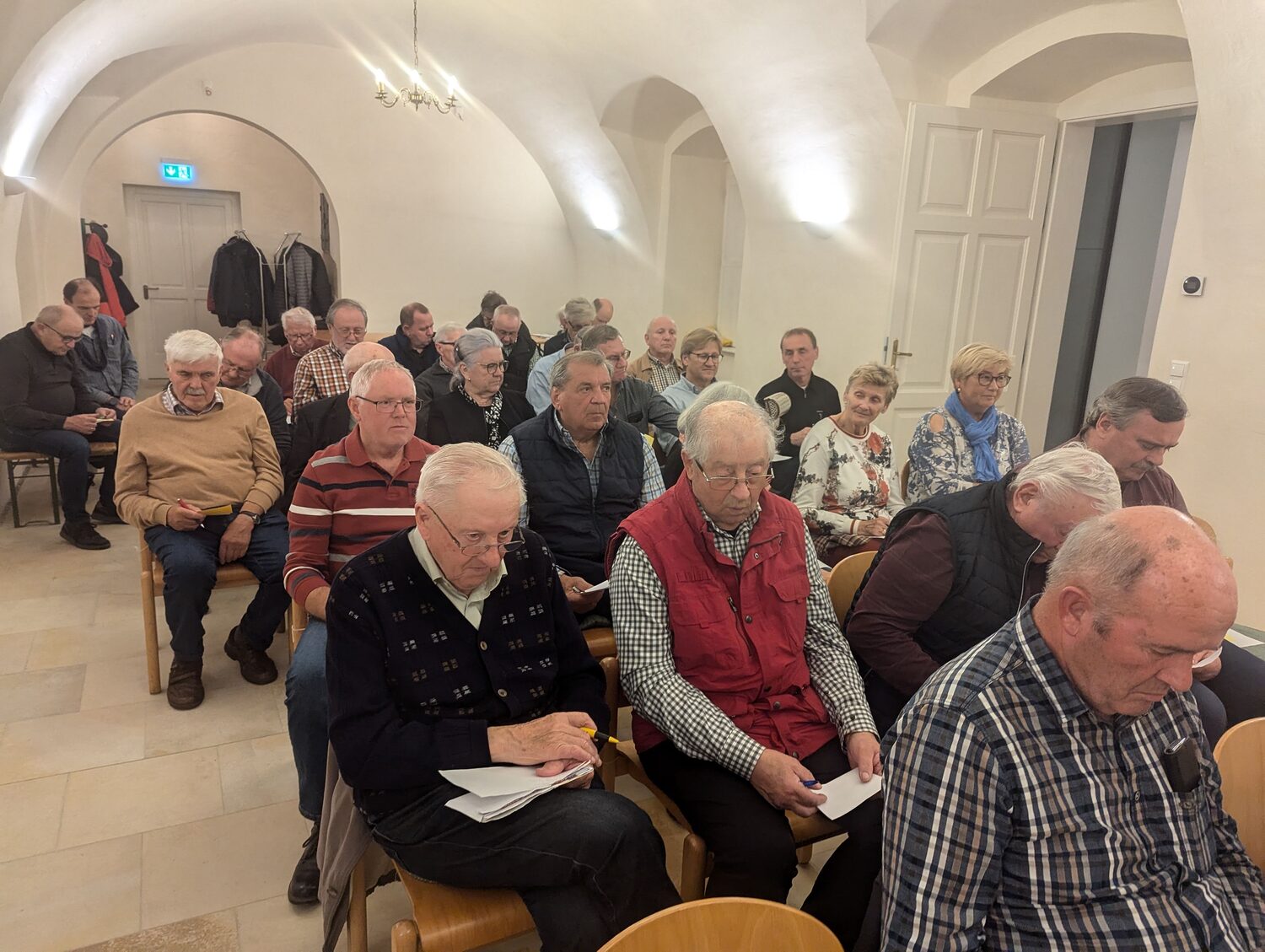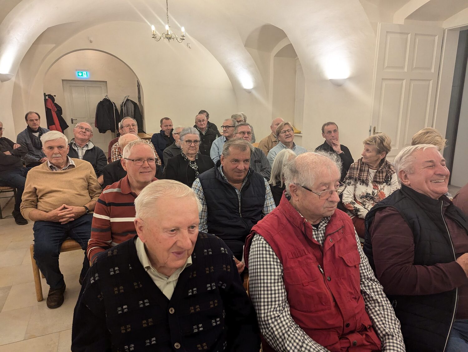 Die Veranstaltung zog nicht nur viele Männer, sondern auch einige Frauen an, die sich in der einladenden und warmen Atmosphäre des neuen Pfarrtreffs sehr wohl fühlten. Die besondere Gestaltung des Raums trug dazu bei, dass der Abend für viele zu einem Ort der Reflexion und des Austauschs wurde.