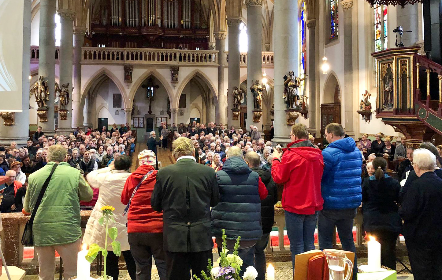 Bischof Iby und alle unsere Seelsorger haben mit uns die Messe gefeiert. Drei Dolmetscher und die Videowand halfen, dass wir alles gut sehen und verstehen konnten. Wir alle waren eingeladen mitzubeten, jeder in seiner Gebärde.