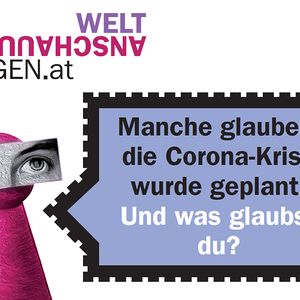 „Manche glauben, die Corona-Krise wurde geplant. Und was glaubst Du?“ Als Gegenüberstellung von aktuellen weltanschaulichen Positionen auf der einen und der Frage nach der je eigenen Überzeugung des/der Betrachter*in auf der anderen Seite, regt die Arbeitsgemeinschaft der katholischen Weltanschauungsreferent*innen Österreichs durch eine österreichweite Initiative zum Nachdenken an.