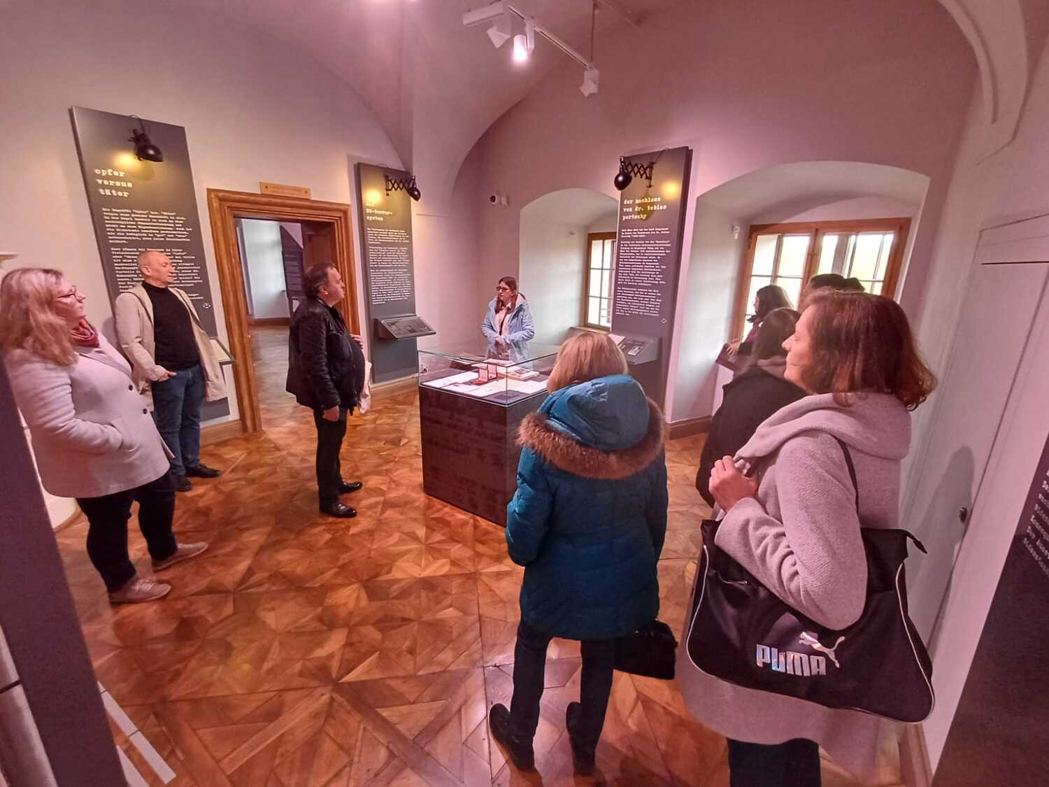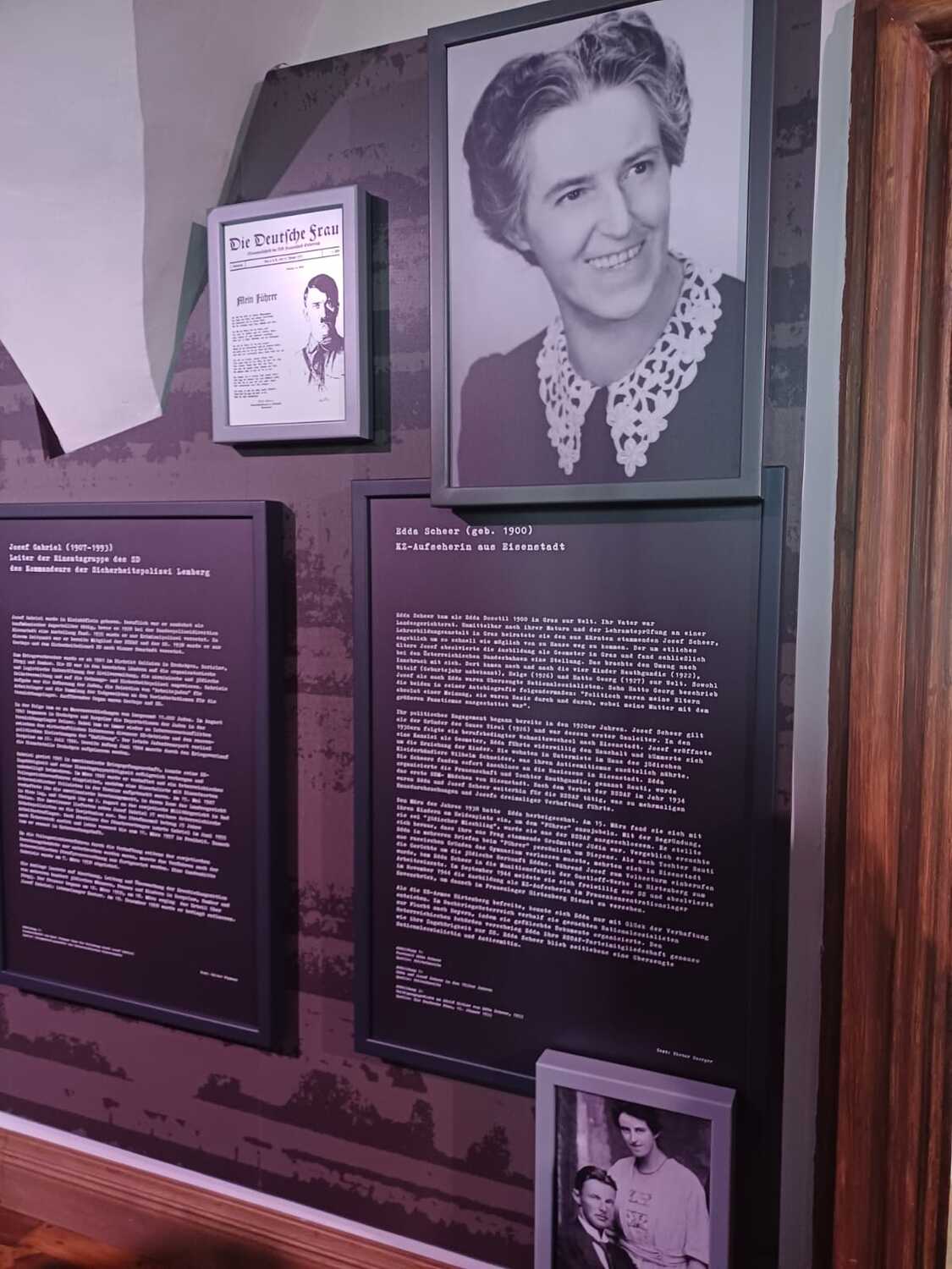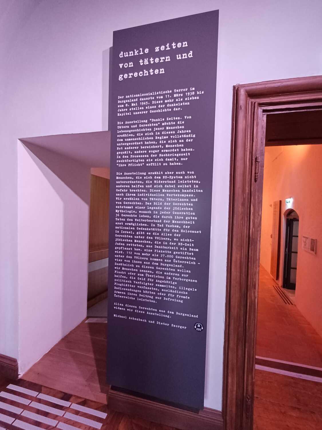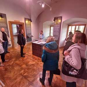 Die Sonderausstellung Dunkle Zeiten. Von Tätern und Gerechten beleuchtet den nationalsozialistischen Terror im Burgenland, von 11. März 1938 bis 8. Mai 1945 datiert - ein Kapitel, das als das dunkelste in der Geschichte des Burgenlandes gilt. Während der Führung wurden uns u.a. die Biografien von Personen vorgestellt, die das NS-Regime unterstützten und auch ausnutzten, um von der Not anderer zu profitieren. Es wurden aber auch jene Personen angeführt, die mutig Widerstand leisteten und sich selbst in Gefahr brachten, weil sie verfolgten Menschen halfen. Diese Ausstellung ist all den Gerechten gewidmet. Sie regte tiefgehende Reflexionen über Zivilcourage und Mitmenschlichkeit an.