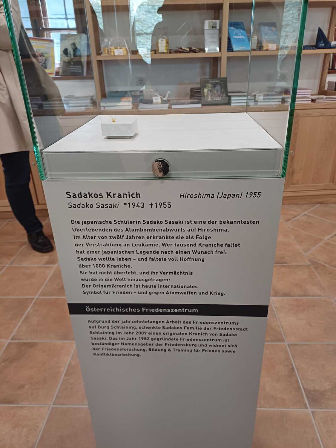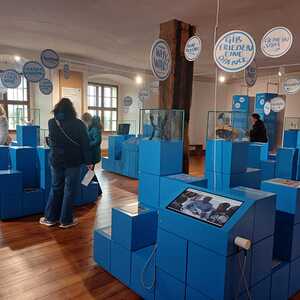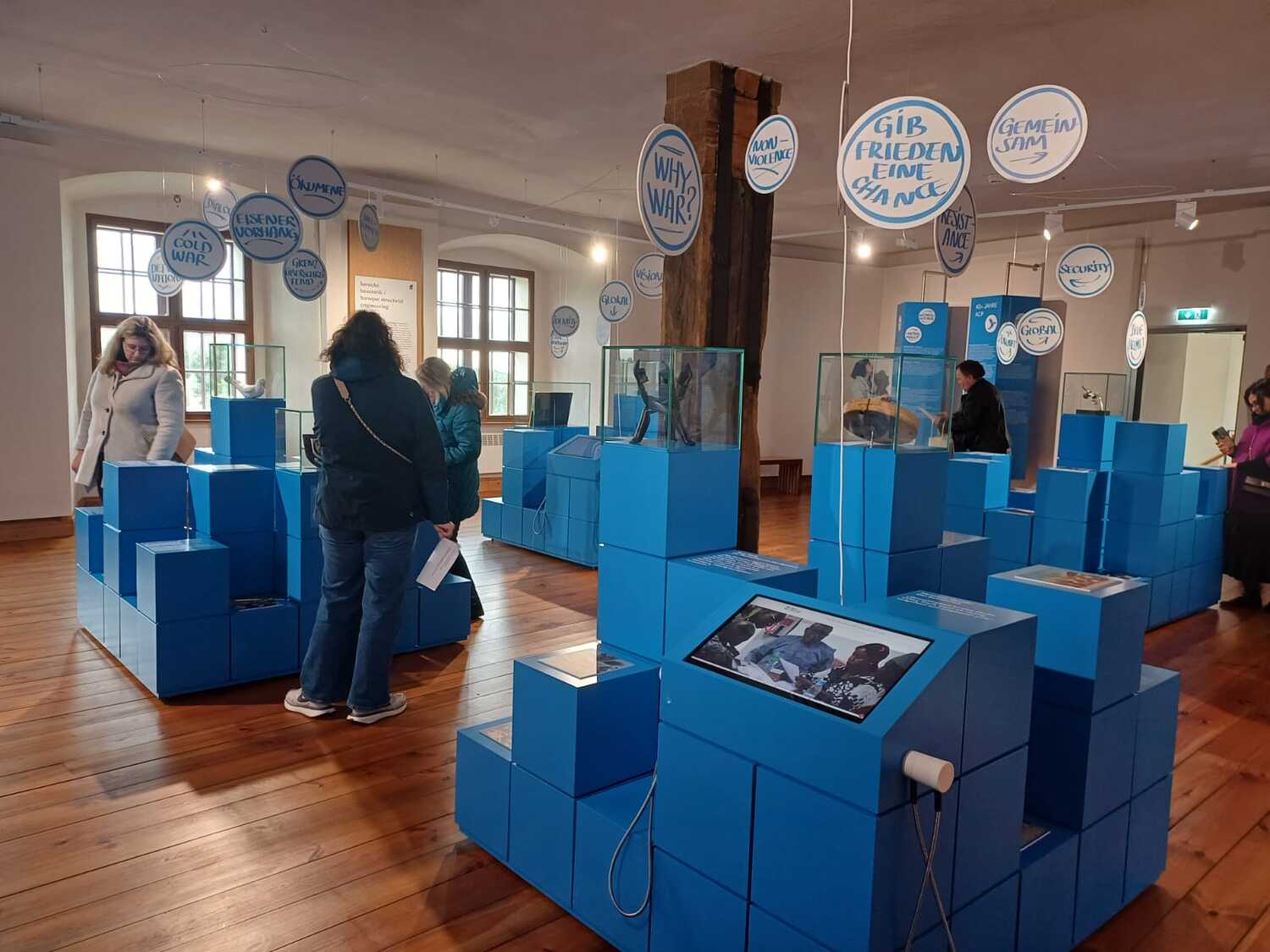 Die Führung durch die Ausstellung Schlaining und Frieden des Austrian Centre for Peace (ACP) bot einen interaktiven Einblick in dessen Entstehungsgeschichte, Arbeit und Methodik. Beginnend mit der Gründung in den 1980er-Jahren durch Gerald Mader wurde ein Bogen bis zu den aktuellen Konflikten unserer Zeit gespannt. Die Ausstellung ermöglichte uns eine Auseinandersetzung mit verschiedenen Aspekten von Frieden und Friedenskultur und die Bedeutung der Friedensarbeit in einer globalisierten Welt zu erkennen. Die Bedeutung des positiven Friedens wurde deutlich.