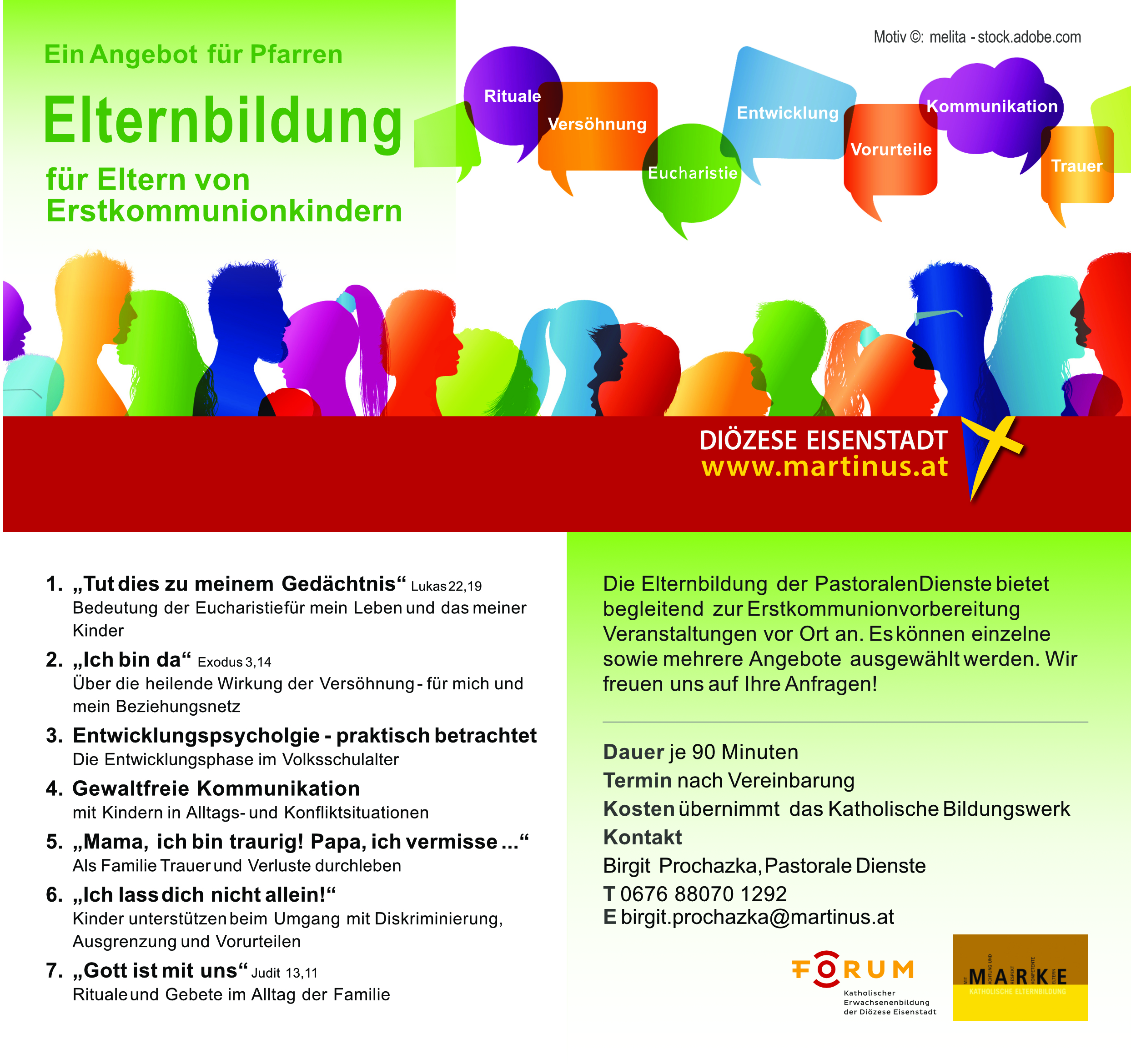 Mit dem neuen Elternbildungsangebot für Pfarren bieten wir den Eltern der Erstkommunionskinder ein breites Programm zur Auswahl.