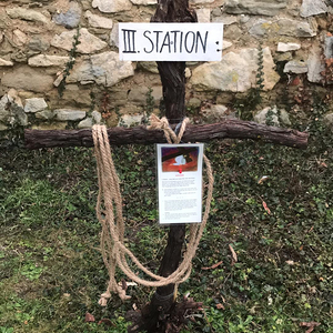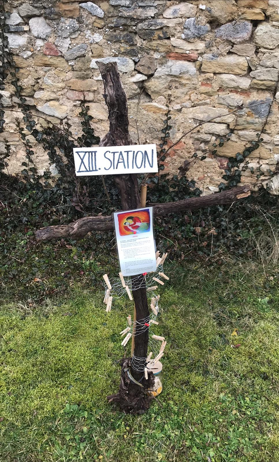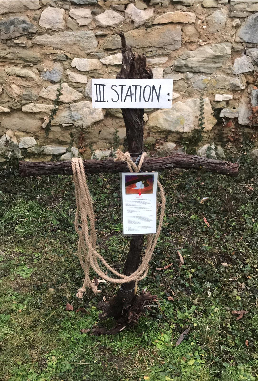 Im Pfarrgarten in Mönchhof erwartet Klein & Groß  ein KREUZWEG aus alten Weinstöcken ... fürs persönliche Bedenken und Mitgestalten!