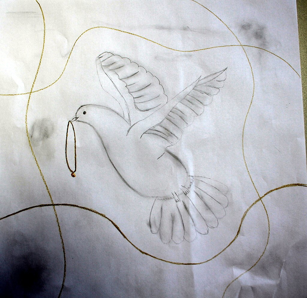 In den Hungertüchern, die die Schülerinnen und jeder Schüler malen, und bringen neben Verletzungen und Krisen auch Wandlungsmomente durch verschiedene Hoffnungssymbole zum Ausdruck.