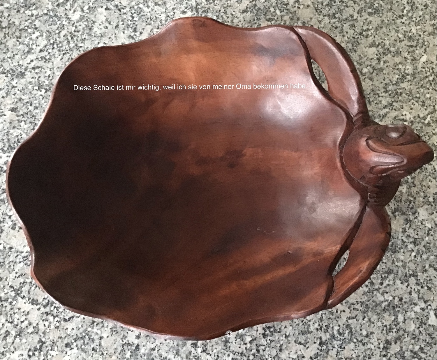 schreib, wenn du magst, einen Satz dazu, der erzählt, warum dir diese Schale wertvoll ist und schicke das Bild an: