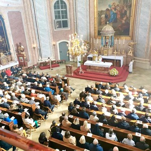 Mozarts Krönungsmesse als krönender Höhepunkt am heutigen Ostermontag mit rund 70 Musikerinnen und Musikern, sowie Sängerinnen und Sängern in der übervollen Bergkirche in Eisenstadt. Unser Herr Militärdekan freute sich, dass auch viele Kameraden des Aktiv- und Ruhestandes gekommen sind, darunter der ehemalige Militärkommandant des Burgenlandes und Minister aD Johann L.