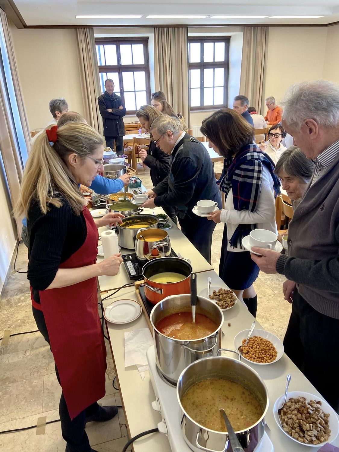 Es hat soooo gut geschmeckt! Und das alles für den guten Zweck! Beim Fastenmenü am Oberberg war für jeden Geschmack etwas dabei . Von einer Rote-Linsen-Suppe über Bärlauch- und Schwammerl-Suppe bis zum Kürbis-Kichererbsencurry und verschiedenen Nachspeisen - es hat wunderbar geschmeckt! Ein riesengroßes Dankeschön an Gaby Märk-Kraus, die das Fastenmenü gemeinsam mit Pfarrgemeinderäten und freiwilligen Helfern auf die Beine gestellt hat! Vergelt‘s Gott!