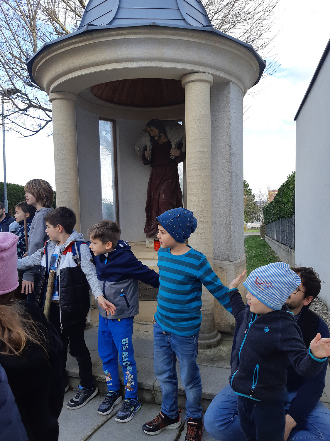 Begonnen haben sie in der Bergkirche. Danach durften sie die Stationen besuchen und einige Gebete mitgestalten: In der Gnadenkapelle des Kalvarienberges, bei der Dreifaltigkeitssäule Kleinhöflein, bei der Antoniuskapelle und beim Guten Hirt am Axerweg.