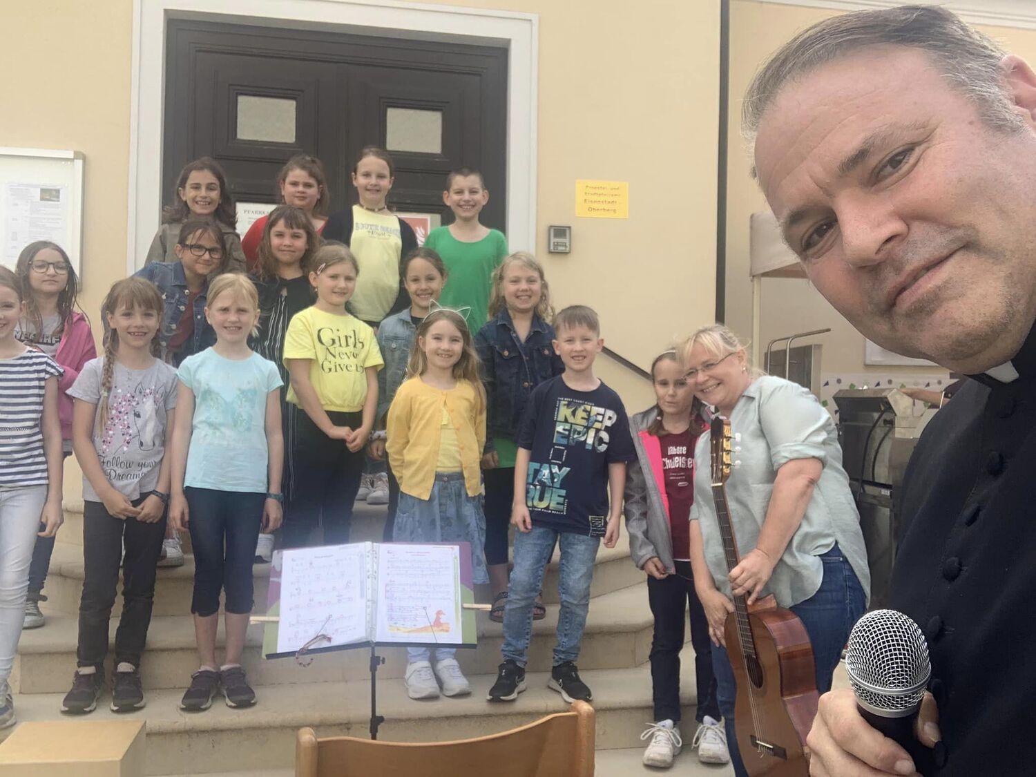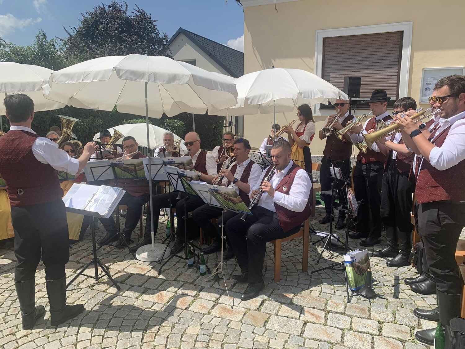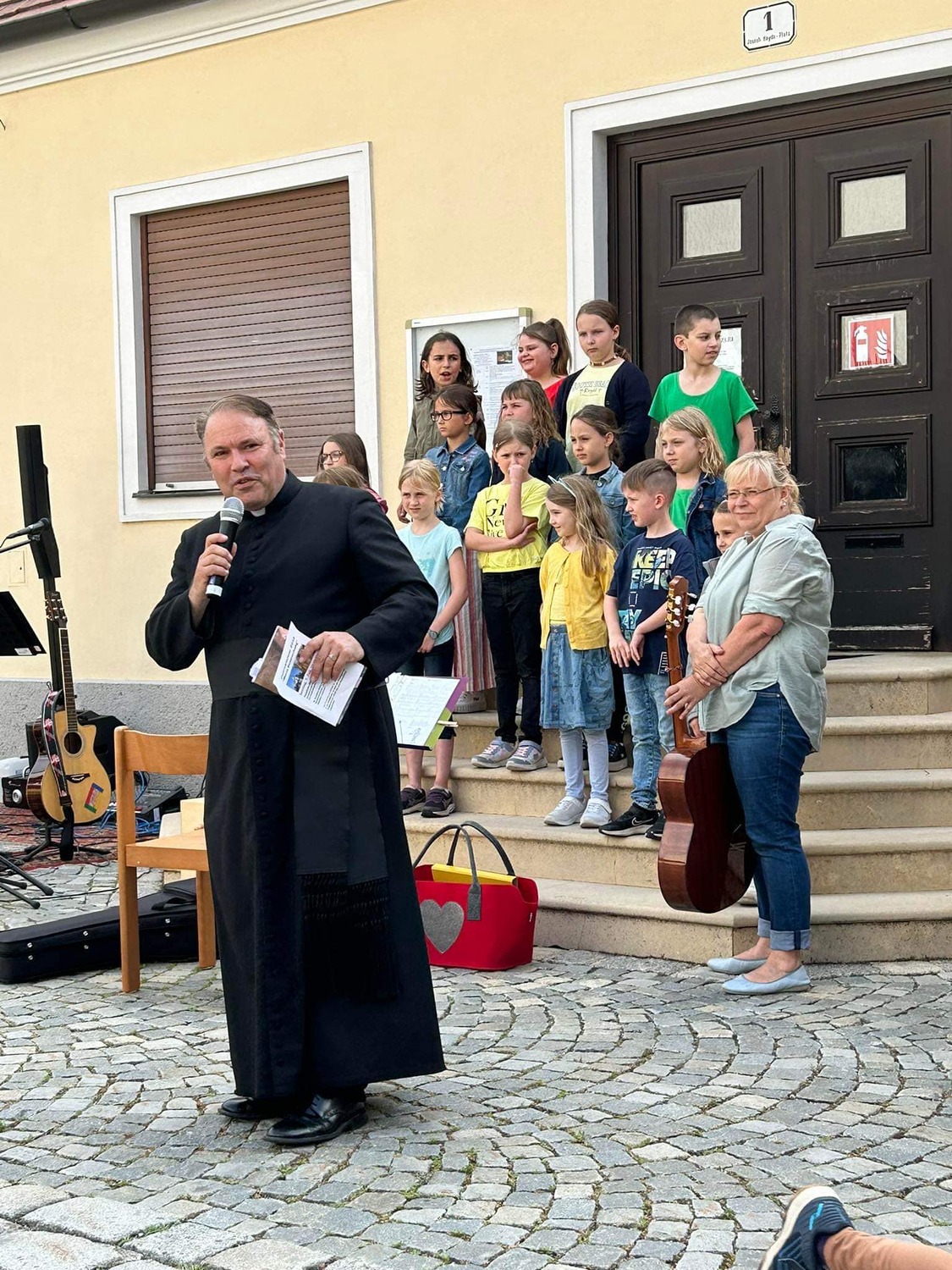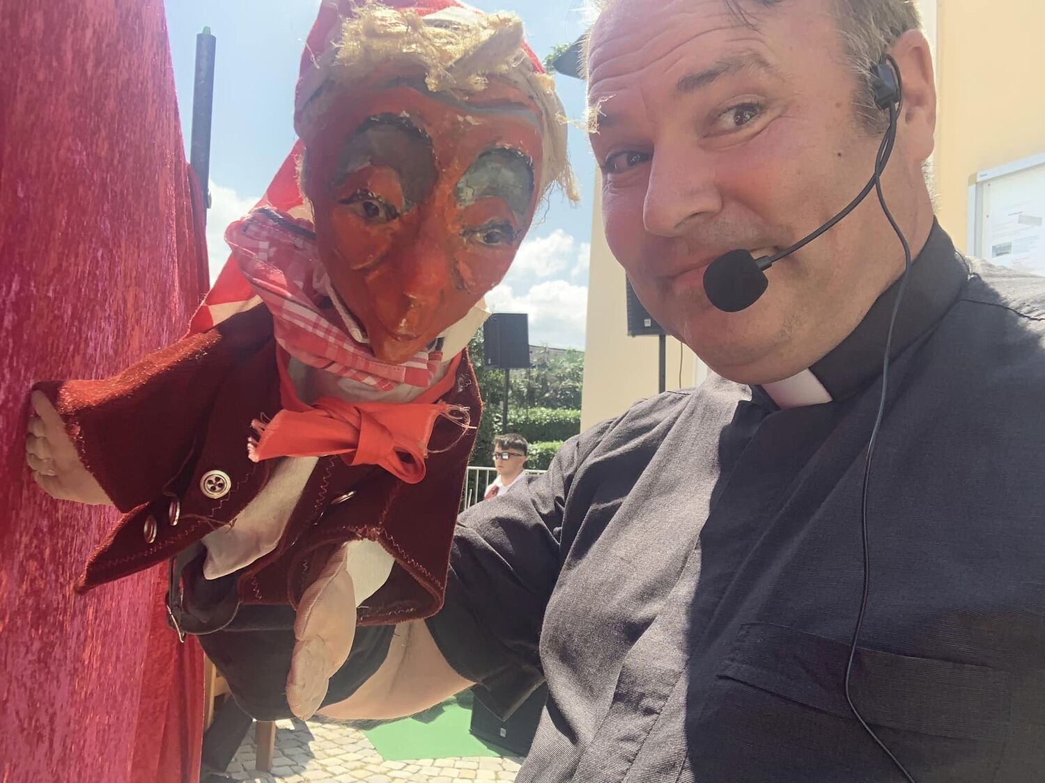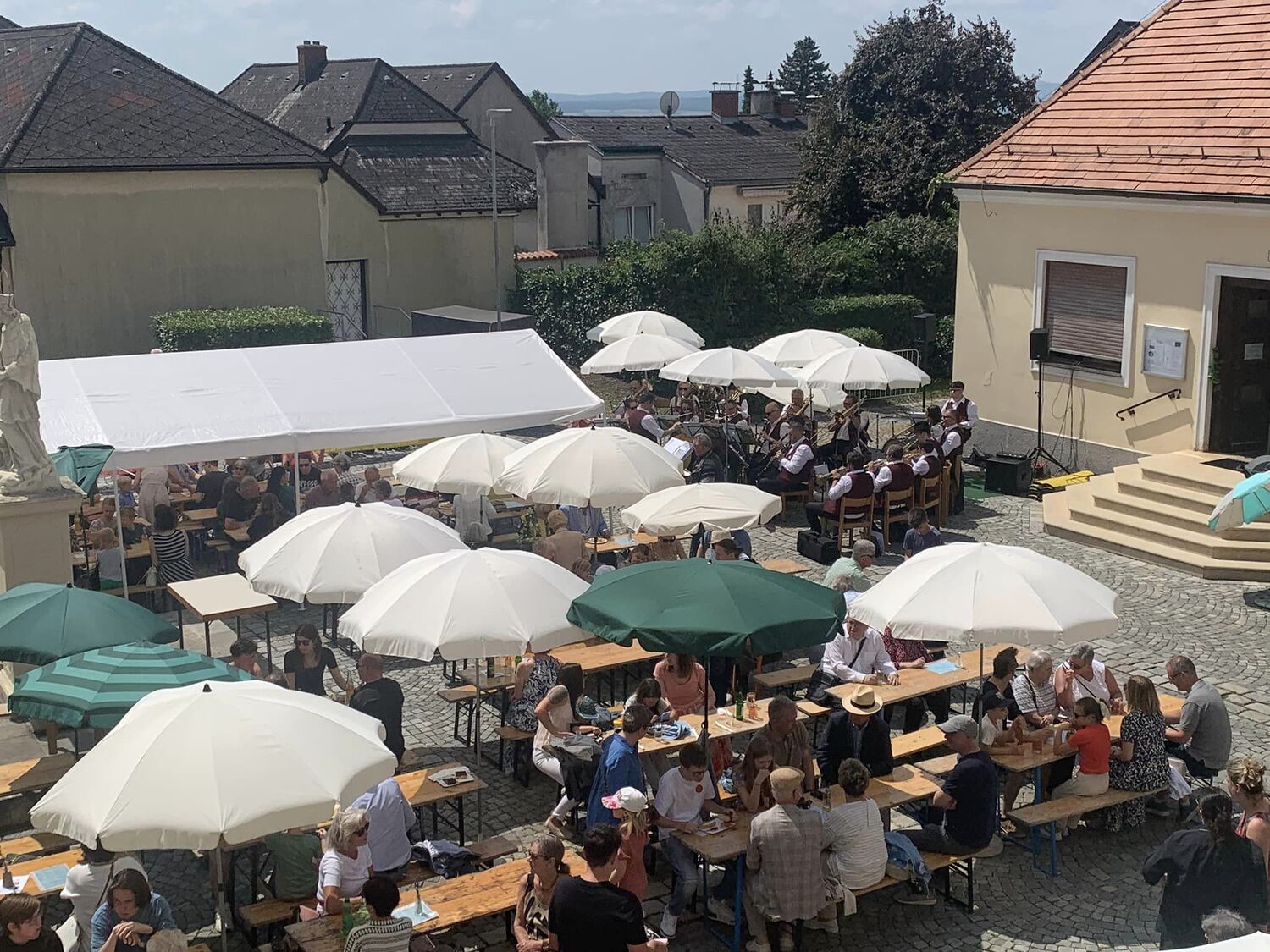 Nach einem feierlichen Gottesdienst, der von unserem Chor und der Band „Freu(n)de“ musikalisch gestaltet wurde und an dessem Ende unserem Herrn Pfarrer noch durch den Herrn Bürgermeister. Seitens des Pfarrgemeinderates, der Kinder und des Kirchenchores zum Geburtstag gratuliert wurde, fand am Joseph Haydn Platz der Frühschoppen statt, welcher von der Stadt- und Feuerwehrkapelle Eisenstadt umrahmt wurde. Neben köstlicher Kulinarik, welche heute durch hervorragende Kuchen und Mehlspeisen ergänzt wurde, gab es wieder ein Programm für die Kinder, wobei der Besuch des Kasperl sicher einen besonderen Höhepunkt darstellte. Die Verlosung der Preise der Tombola sicherlich einen weiteren Höhepunkt dar.