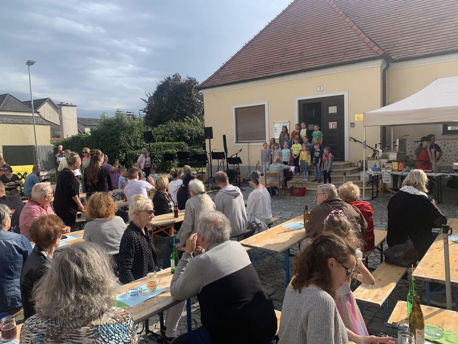 Danke an alle Helferinnen und Helfer in der Küche und an den Fritteusen, hinter der Bar, beim Bonverkauf und bei der Abwasch. Danke an alle Losverkäufer, Kellnerinnen und Kellner, sowie an die Technik. Danke an die Stadt und den Bauhof für die tolle Zusammenarbeit. (Es hat uns riesig gefreut, dass der Herr Bürgermeister, der Herr Vizebürgermeister und die Frau Vizebürgermeisterin mit uns gefeiert haben!). Danke an alle Sponsoren der Tombolapreise und jenen, die und durch Plakate finanziell unterstützt haben. Danke an die Mitarbeiterinnen beim Kinderprogramm, an die Sängerinnen und Sänger des Chores aus Kleinhöflein und die Band Freu(n)de. Danke an alle, die die Tische und Zelte aufgestellt haben. Nicht zuletzt danke an das Organisationsteam rund um Günter, Bettina, Fred und Andi. Ein großes Dankeschön natürlich an alle Besucherinnen und Besucher vom Oberberg, aus Kleinhöflein und der Dompfarre, sowie an die vielen Besucher aus nah und fern!
