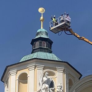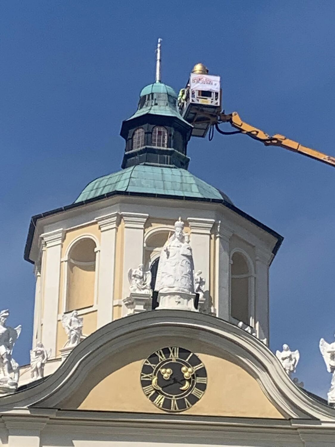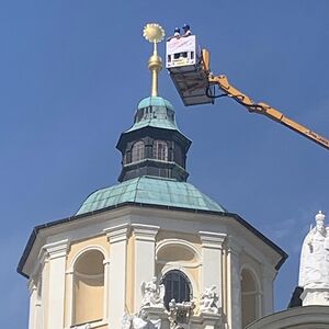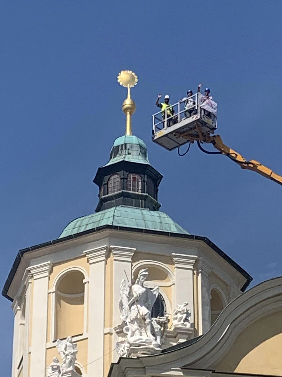 Auf der Kuppel der Kreuzkapelle erstrahlt ab heute wieder die gewaltige goldene Sonne...
