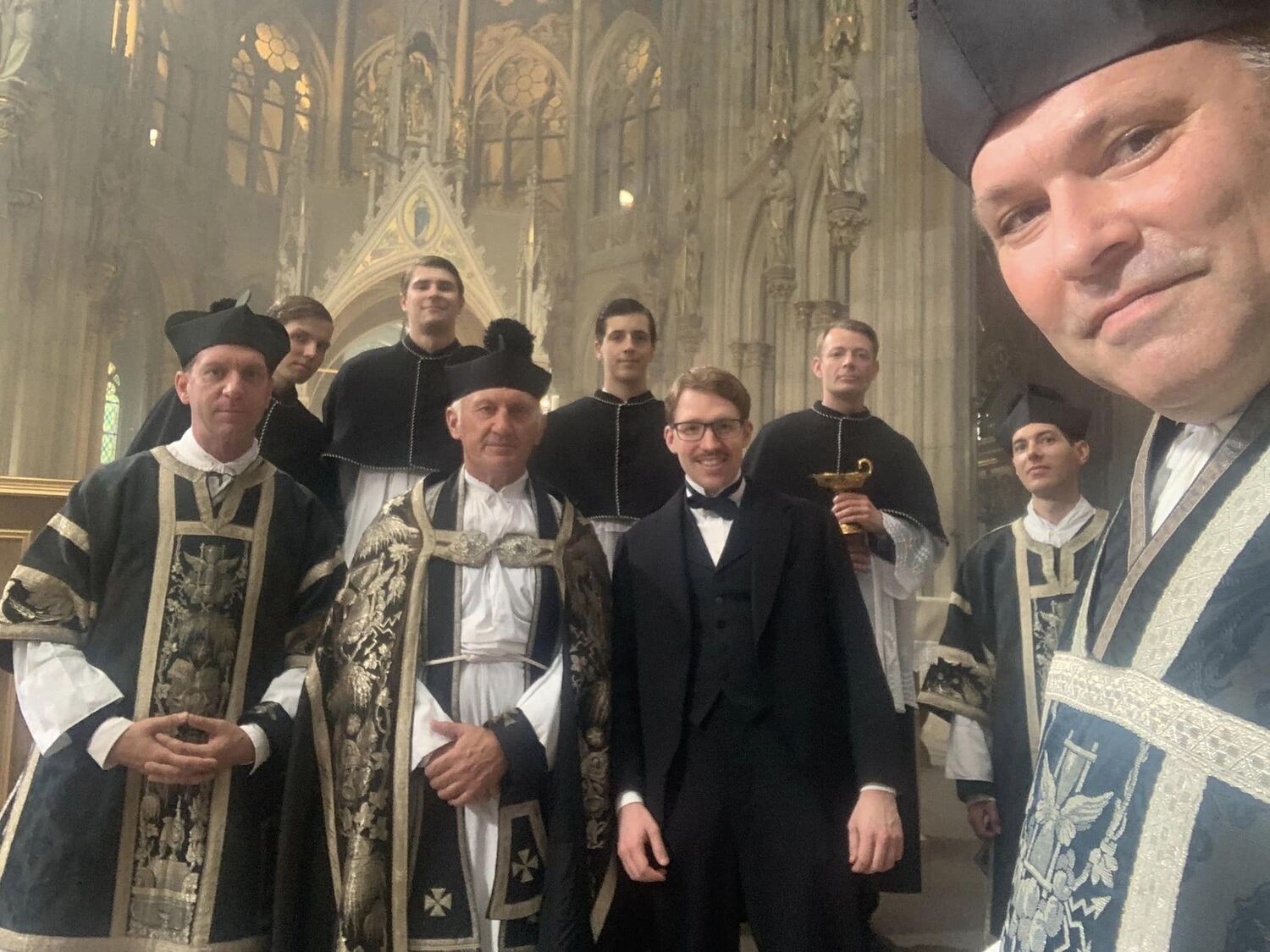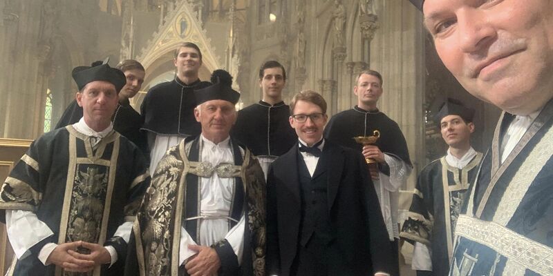 Heute und morgen (11. + 12.9.2023) wechselt unser Herr Pfarrer die Sedile des Propstpfarrers am Oberberg mit jener des Propstpfarrers der Wiener Votivkirche. Ob er deshalb - sogar in schwarzen Trauerparamenten - was zu lachen hat? Wir werden es bald verraten...