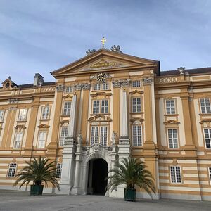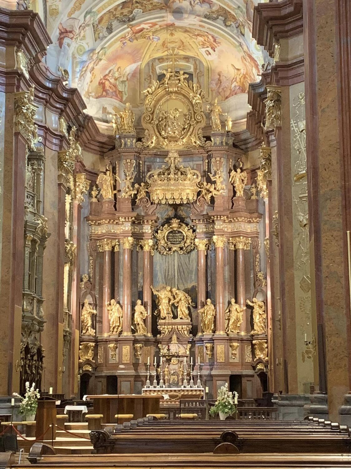 Die erste Station war allerdings das wunderbare Stift Melk. Pater Alois erklärte uns mit launigen Worten nicht nur die Geschichte des Stifts, sondern zeigte uns auch so manches verborgene Detail in der Kirche, bevor es zu einer kleinen Jause in den sonst verschlossenen Innenhof des Stiftes ging.
