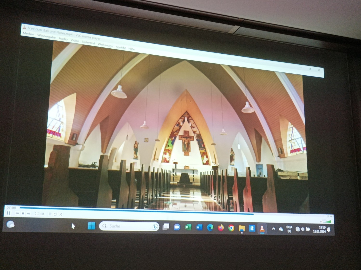 Für uns als Pfarre war dieser Vortag, neben den vielen Informationen über Land und Leute, noch aus einem weiteren Grund interessant, veranstalteten wir doch im Frühjahr 2023 zusammen mit der Indonesischen Botschaft und der Militärpfarre Burgenland einen multikulturellen Abend, dessen Reinerlös zur Anschaffung von Kirchenbänke für eine Kirche auf Flores zur Verfügung gestellt wurde. Auch hier wurden Bilder gezeigt, welche uns daran erinnerten, dass es damals - nicht ganz ohne Gegenwind- viele Pfarrangehörige genossen haben den Blick über unsere Pfarrgrenzen und die Kirche Europas hinaus zu wagen und zu erahnen was unsere Verantwortung gegenüber und in der Weltkirche ist...
