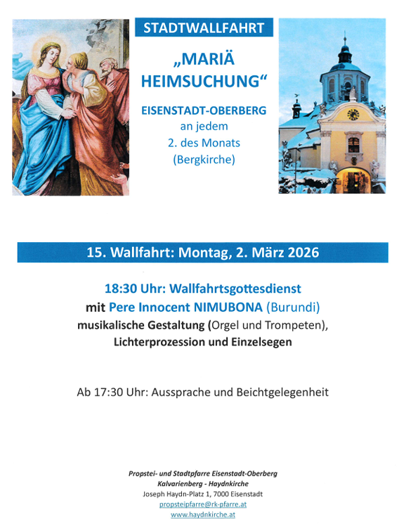 Stadtwallfahrt in der Bergkirche "Mariä Heimsuchung" jeden 2. des Monats 18:30 Uhr.