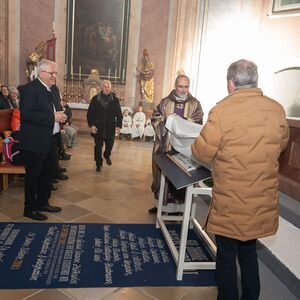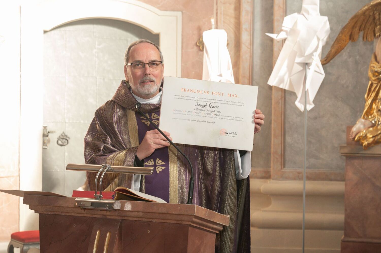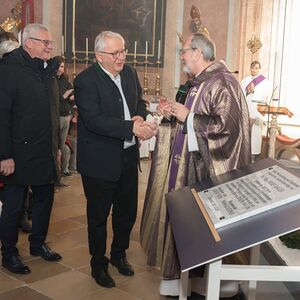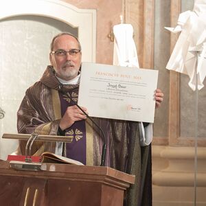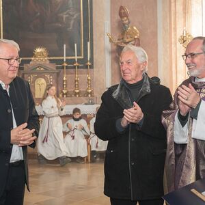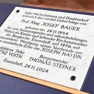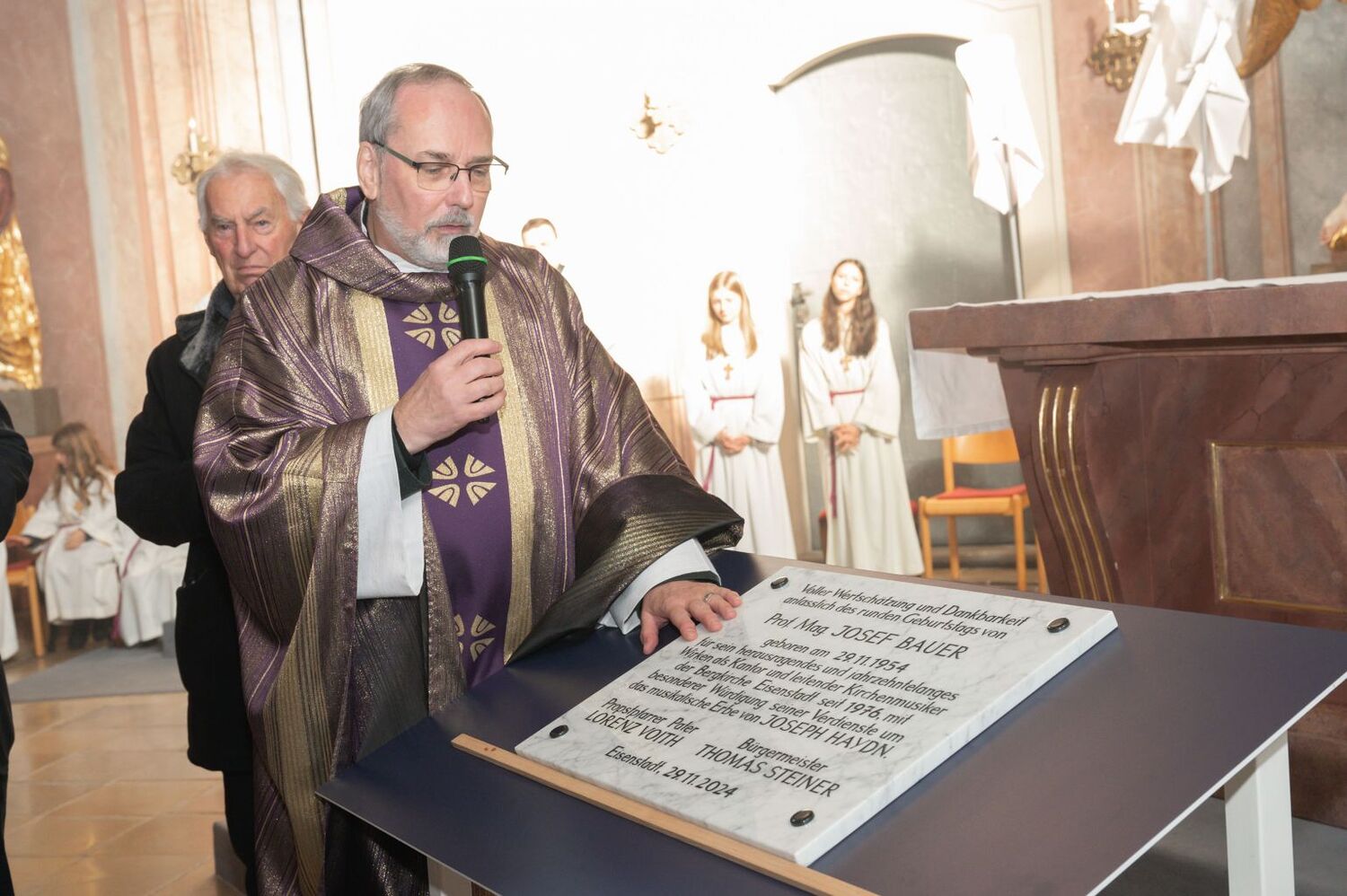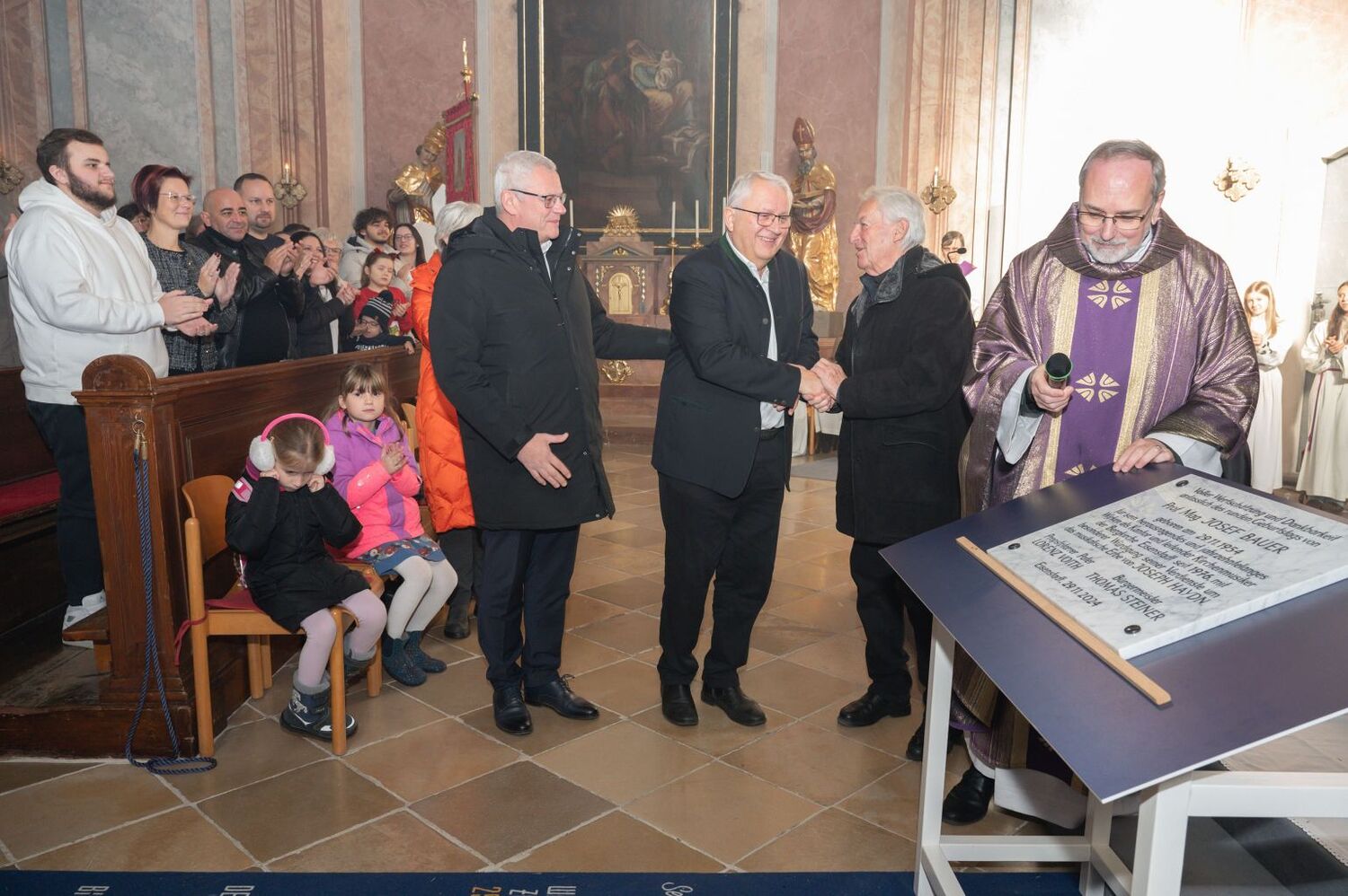 Prof. Bauer ist auch Mitglied im PGR  sowie weiter für den Orgeldienst  zuständig. Zugleich fördert er das Projekt einer umfassenden Restaurierung der Haydn-Orgel. Viele Verwandte und Freunde waren zu diesem Fest gekommen.