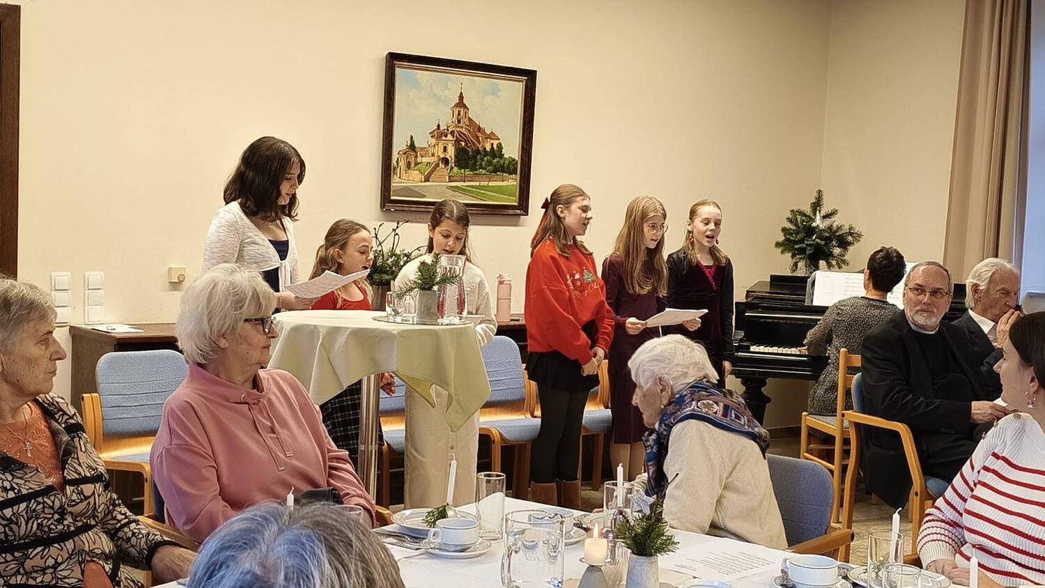 Die Adventsfeier am 17. Dezember war sehr gut besucht und bildete den Jahresabschluss des Seniorencafés. Der Saal des Pfarrheims war bis auf den letzten Platz gefüllt. Besinnliche Gedanken, lustige Texte, Gesang und Musik der Zentralmusikschule Eisenstadt sowie die Segnung durch den Pfarrer prägten die festliche Atmosphäre.