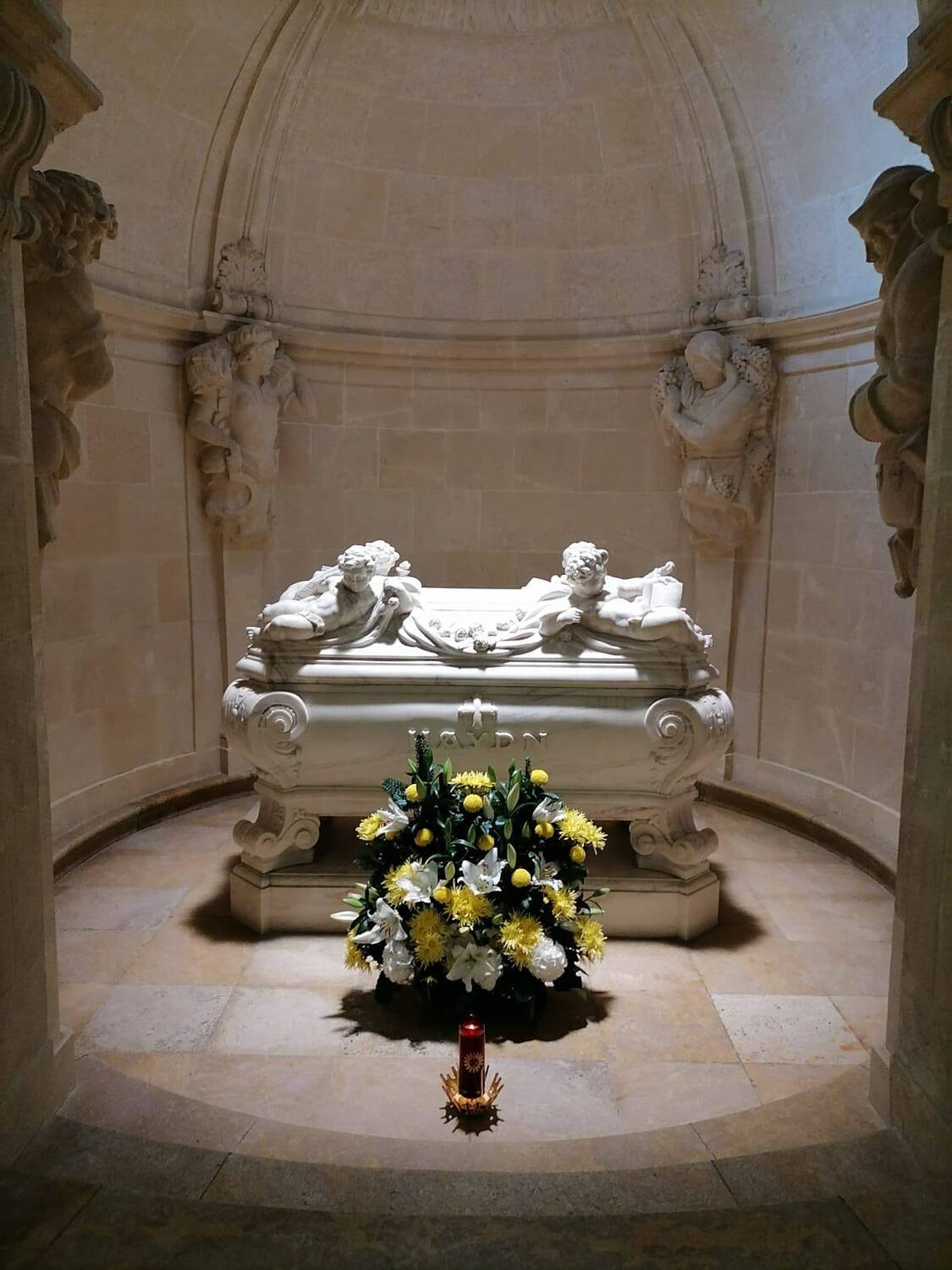 Im Haydn-Mausoleum in der Kirche fand er seine letzte Ruhe. Der weiße Marmorsarkophag, kunstvolle Darstellungen und die berühmten Noten der Kaiserhymne machen diesen Ort besonders eindrucksvoll.