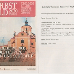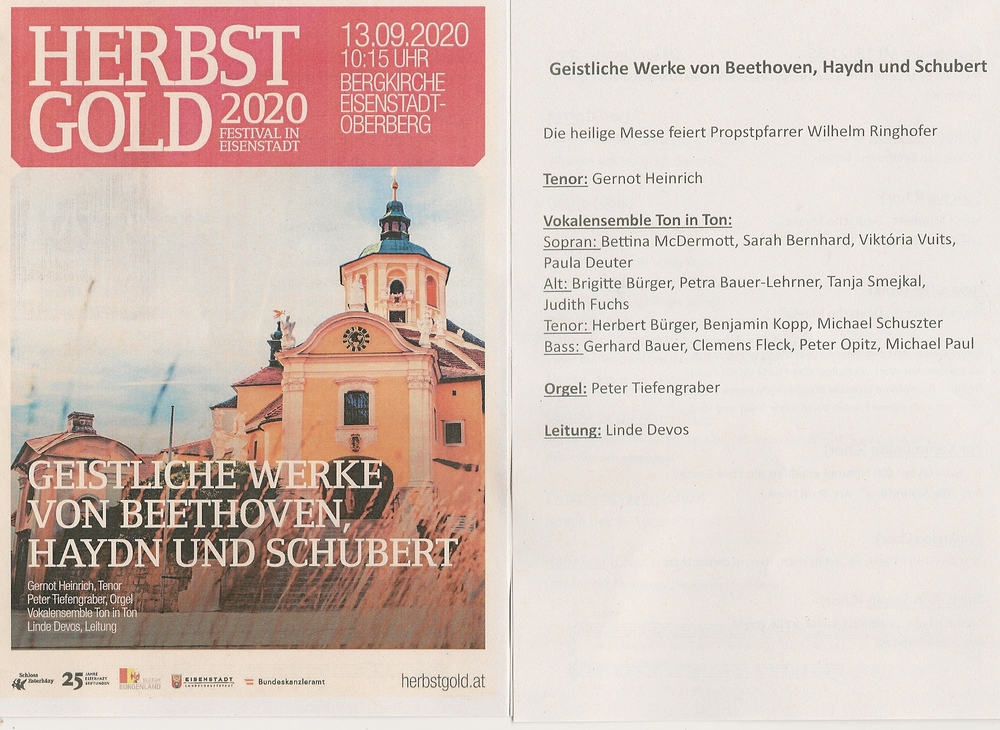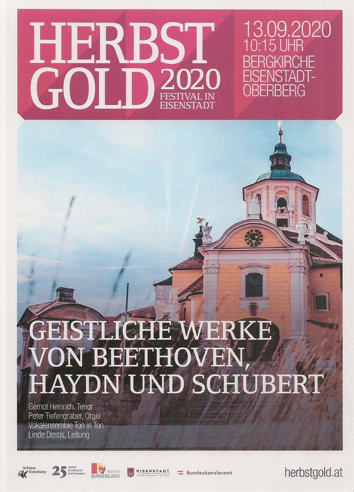 Im Rahmen des Festivals HERBSTGOLD wurden bei der FESTMESSE am 13. September 2020, in der Haydnkirche Eisenstadt-Oberberg geistliche Werke von L.v.Beethoven, J. Haydn und F. Schubert zur Aufführung gebracht.