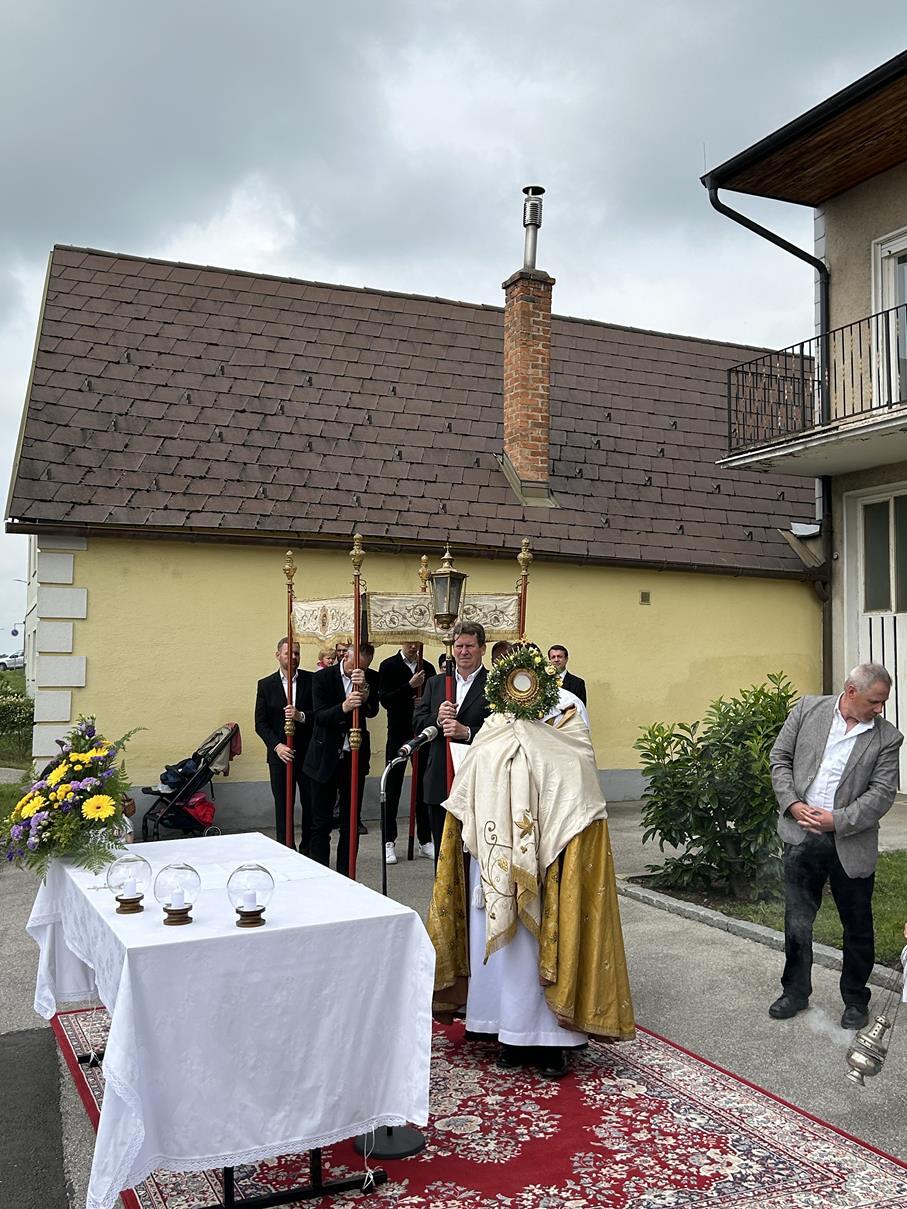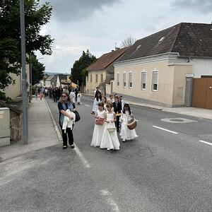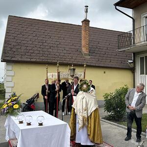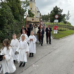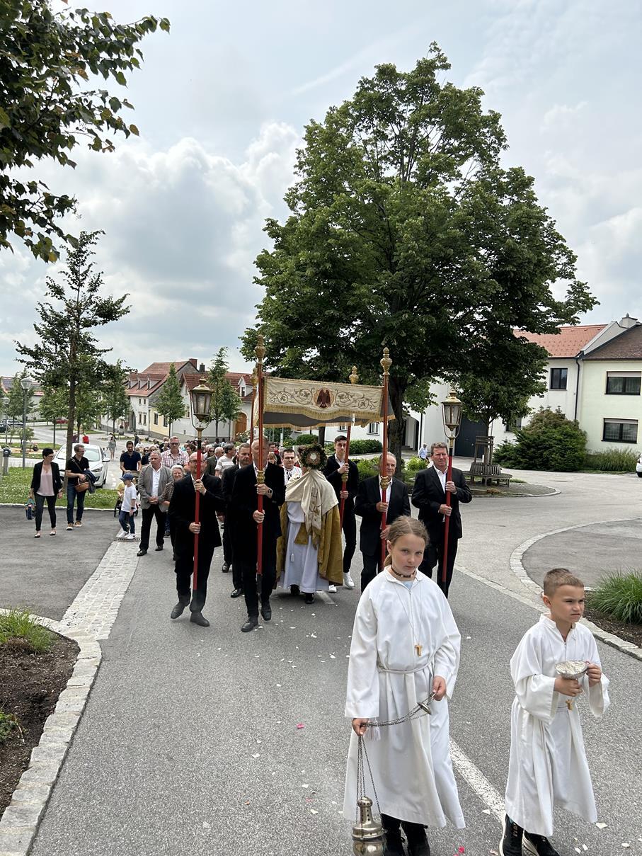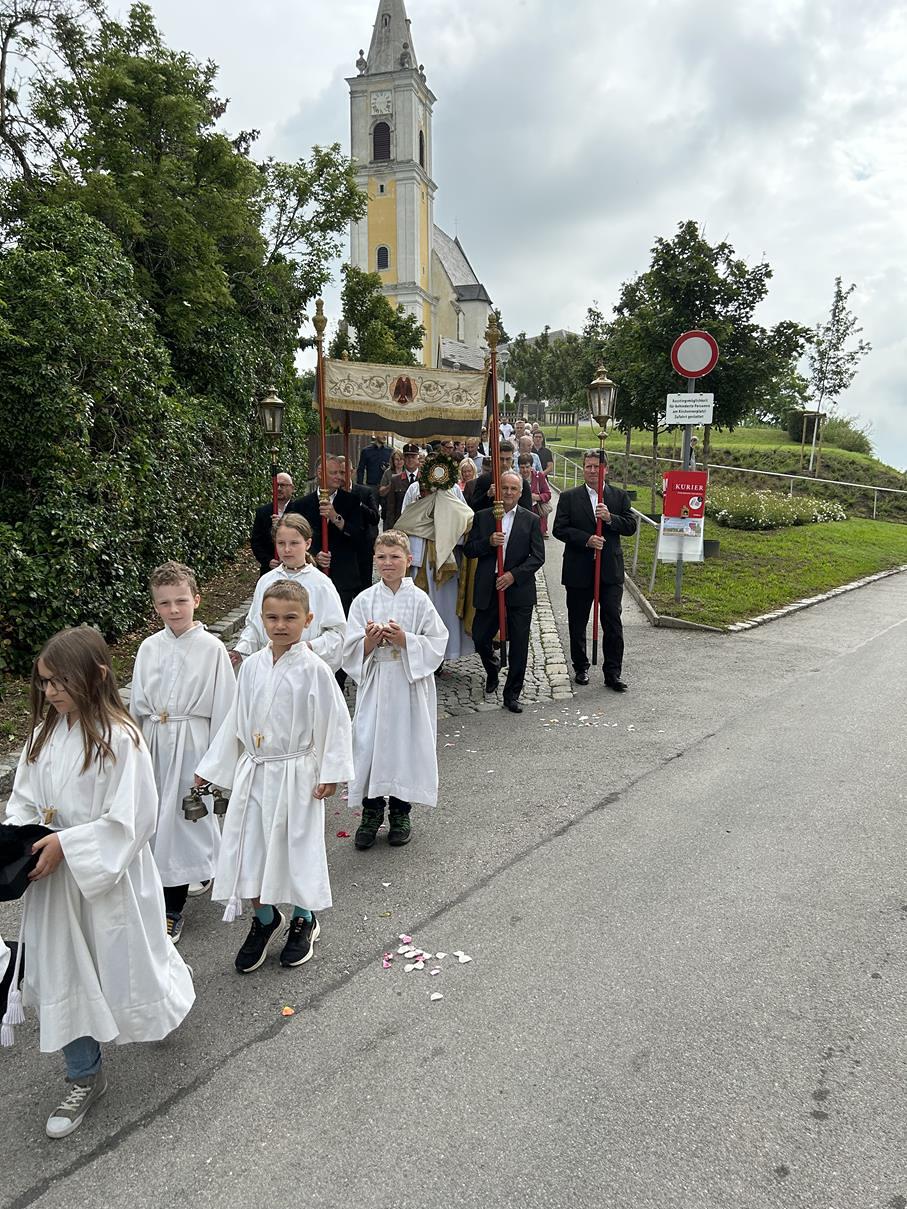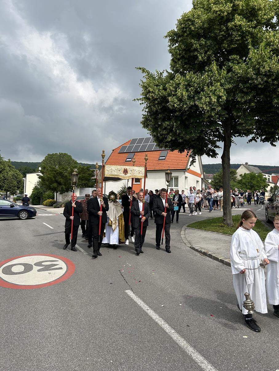 Trotz Regenvorhersage waren wir optimistisch die Prozessin zu riskieren und nicht abzusagen. Besonders beeindruckend war das Spalier des MV Winzerkapelle Kleinhöflein und der Feuerwehr Kleinhöflein bei der Rückkehr zur Kirche zu den Klängen des "Te Deum"...