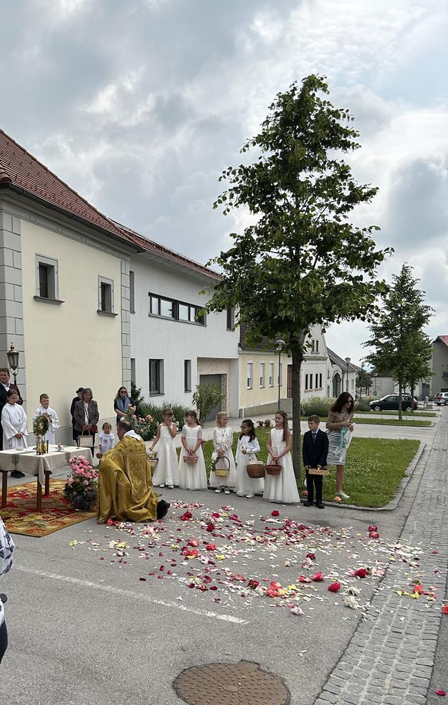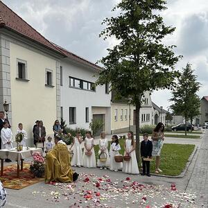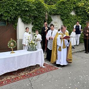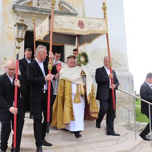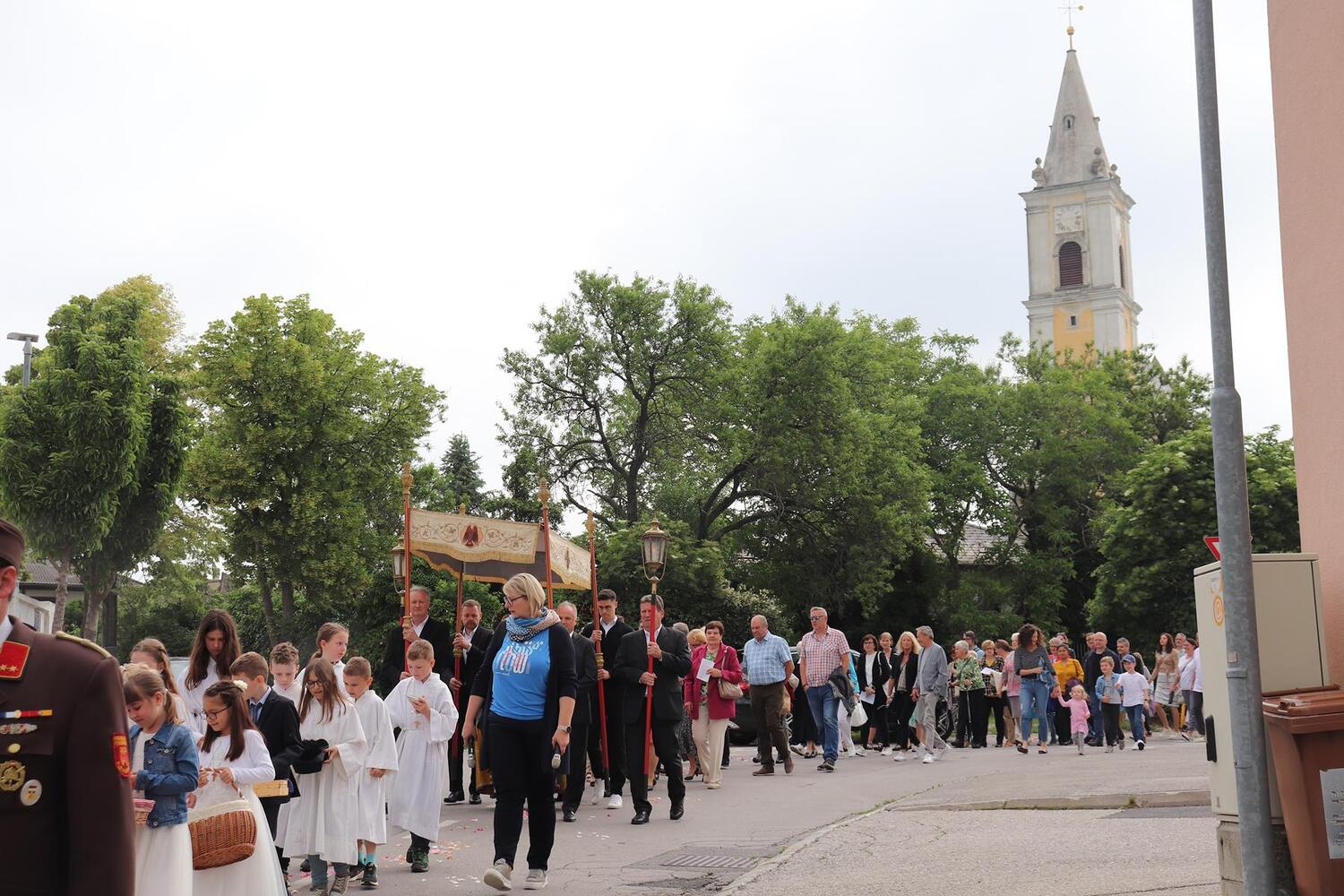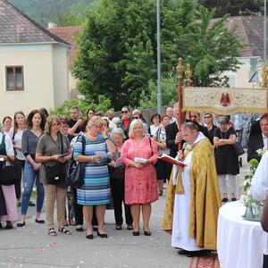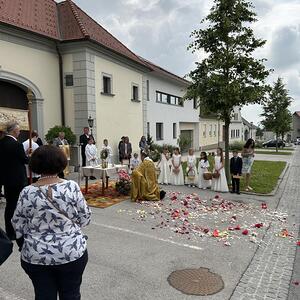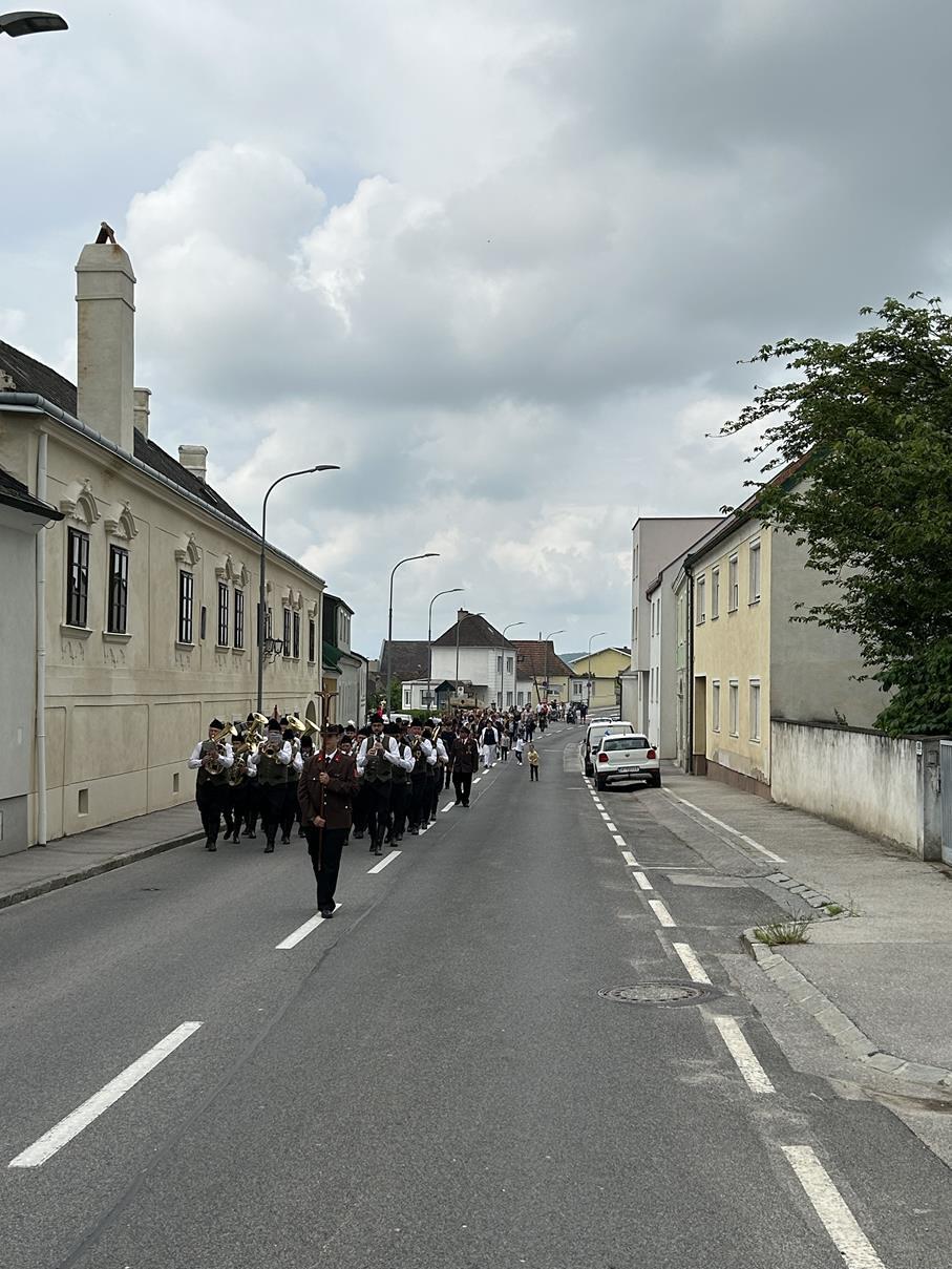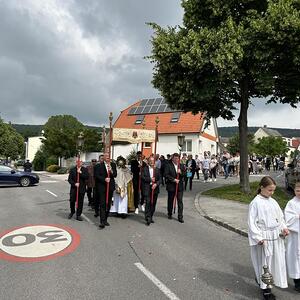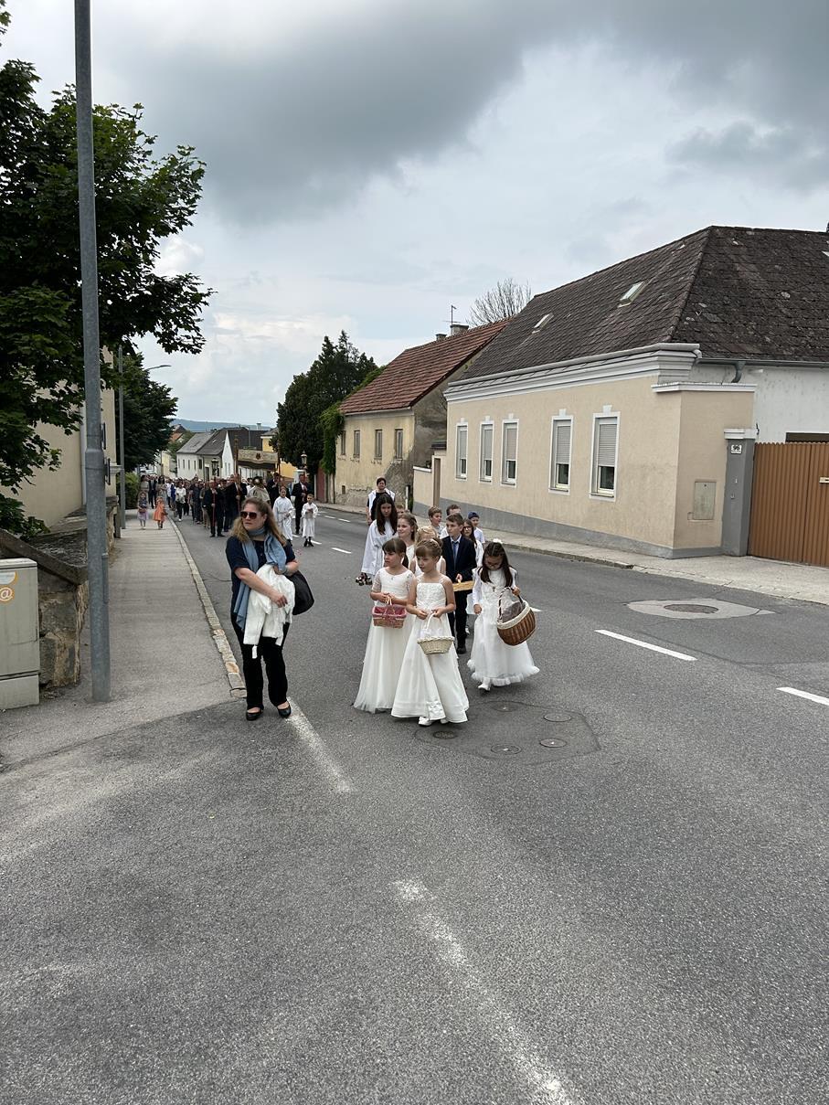 Trotz Regenvorhersage waren wir optimistisch die Prozessin zu riskieren und nicht abzusagen. Besonders beeindruckend war das Spalier des MV Winzerkapelle Kleinhöflein und der Feuerwehr Kleinhöflein bei der Rückkehr zur Kirche zu den Klängen des "Te Deum"...