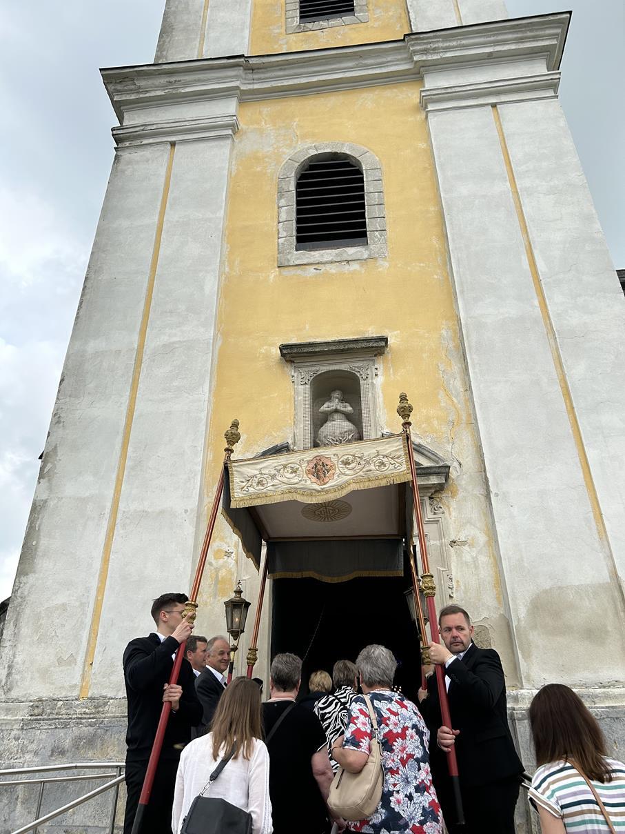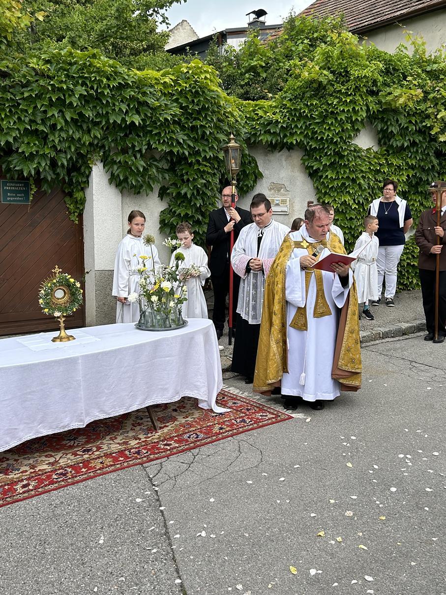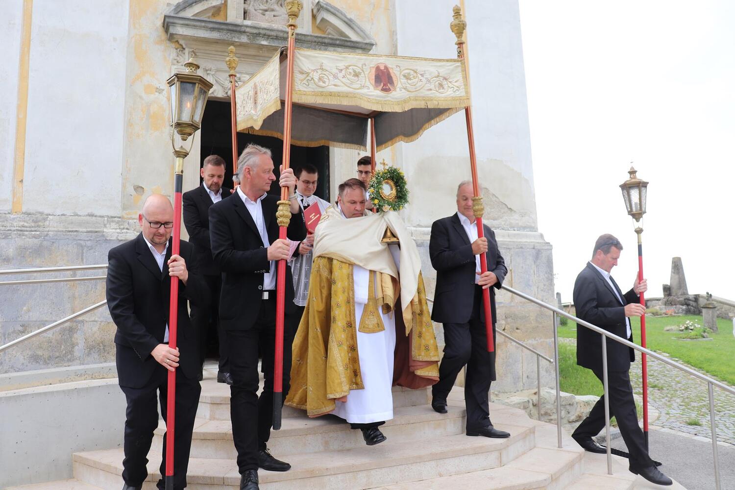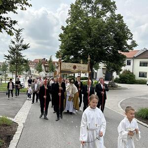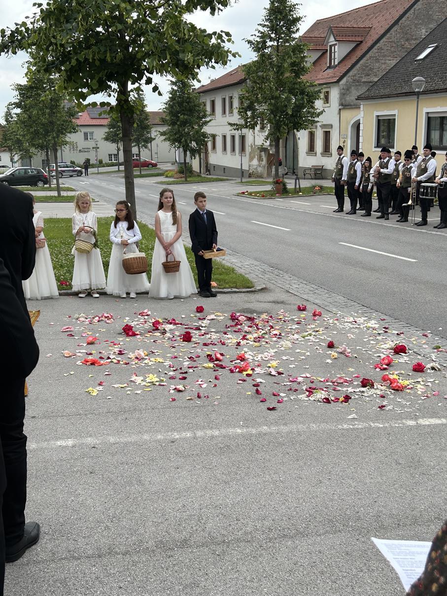 Trotz Regenvorhersage waren wir optimistisch die Prozessin zu riskieren und nicht abzusagen. Besonders beeindruckend war das Spalier des MV Winzerkapelle Kleinhöflein und der Feuerwehr Kleinhöflein bei der Rückkehr zur Kirche zu den Klängen des "Te Deum"...