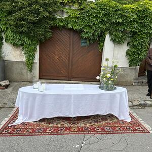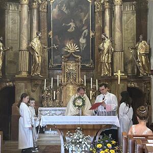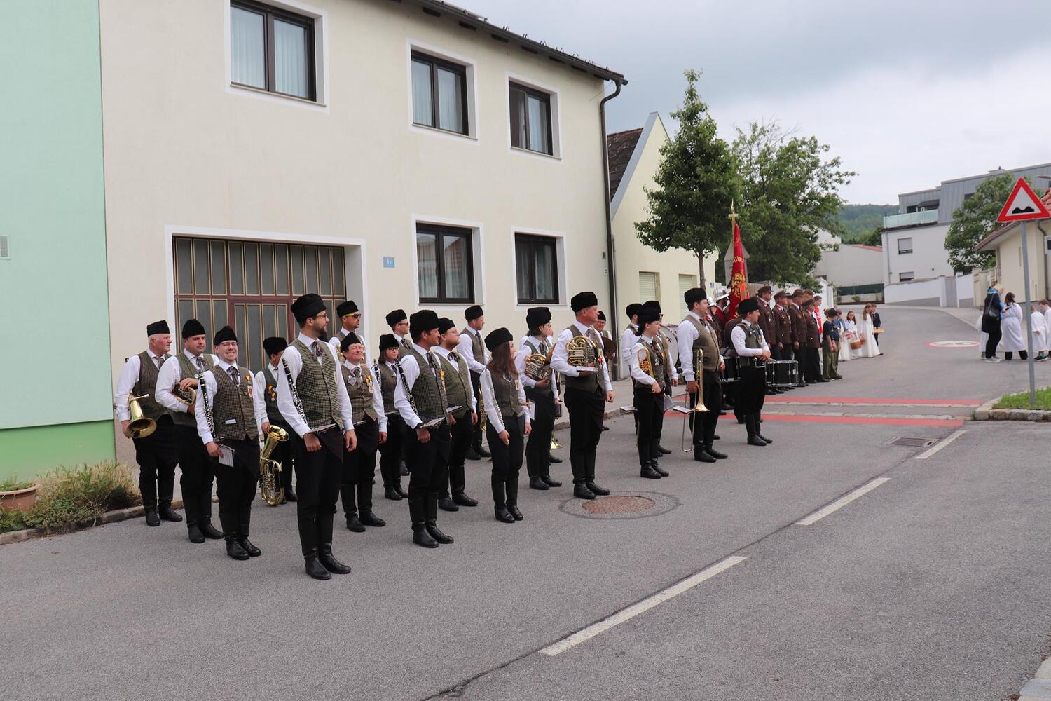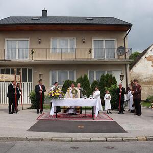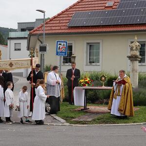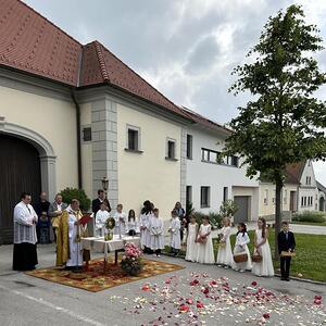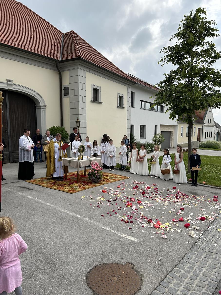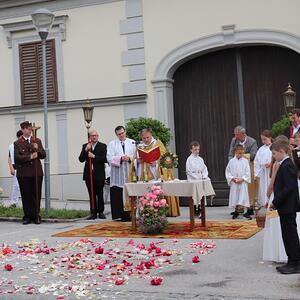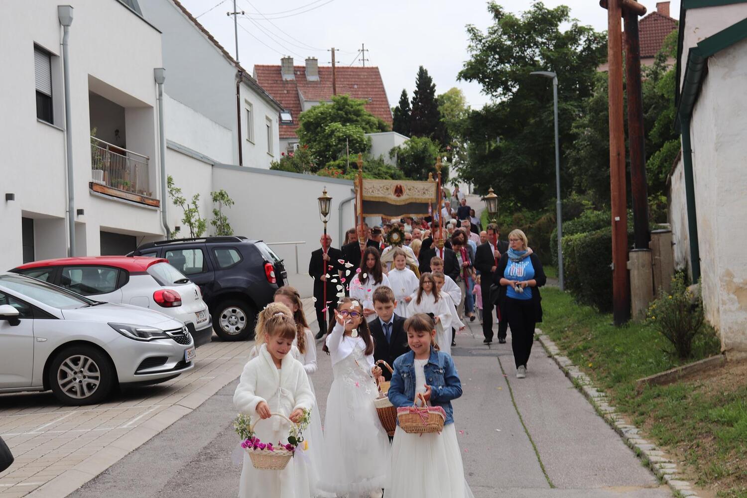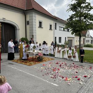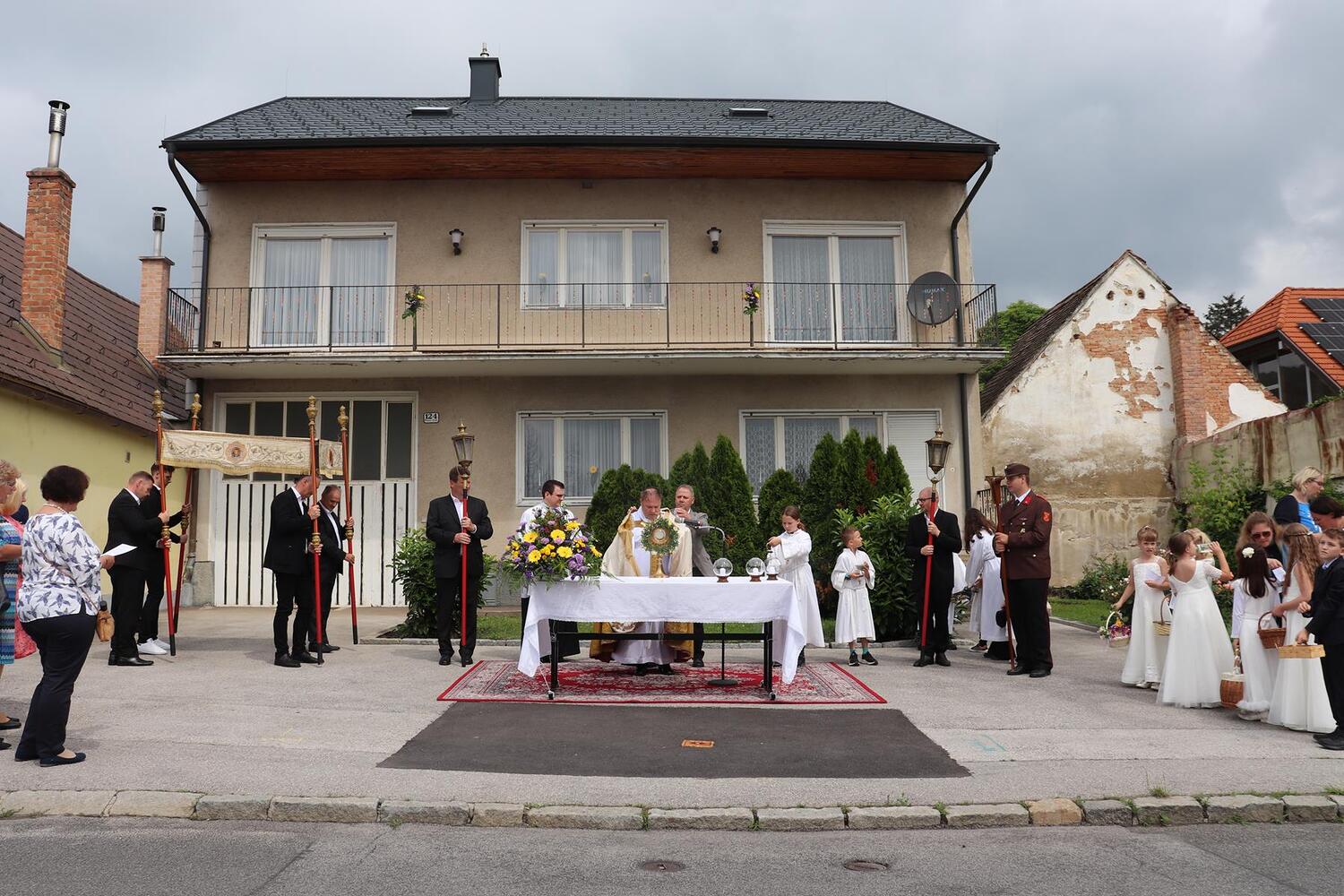 Trotz Regenvorhersage waren wir optimistisch die Prozessin zu riskieren und nicht abzusagen. Besonders beeindruckend war das Spalier des MV Winzerkapelle Kleinhöflein und der Feuerwehr Kleinhöflein bei der Rückkehr zur Kirche zu den Klängen des "Te Deum"...