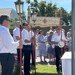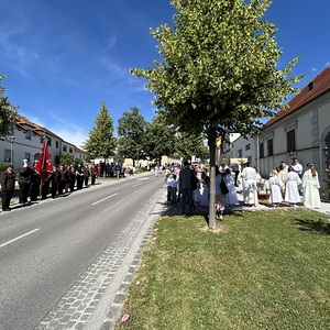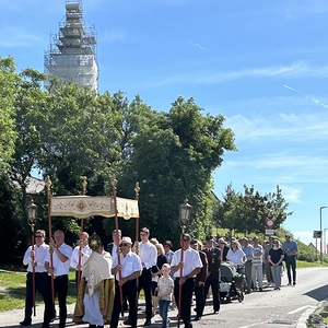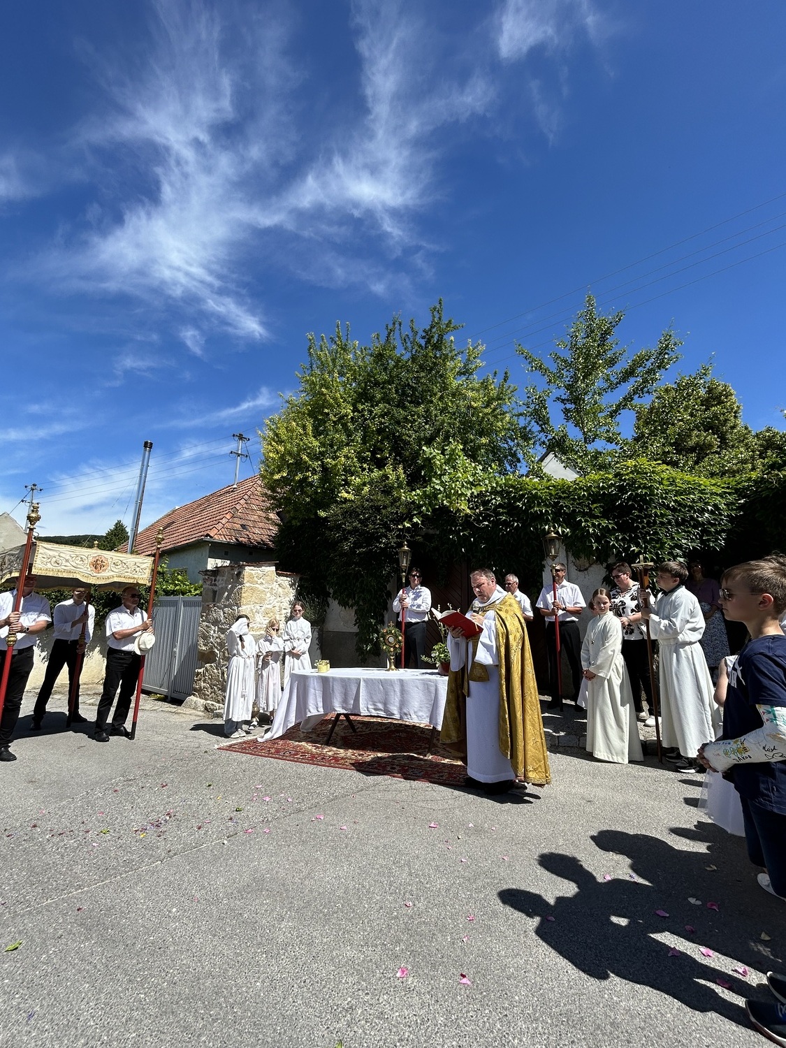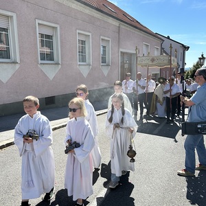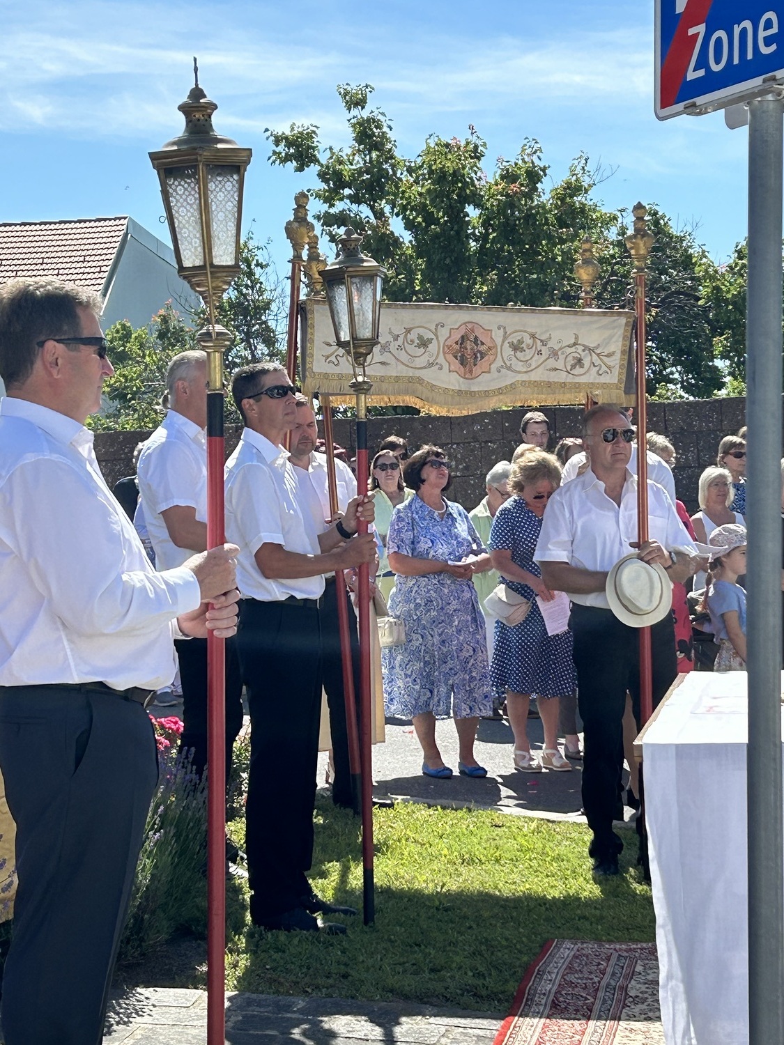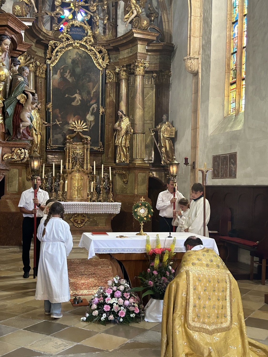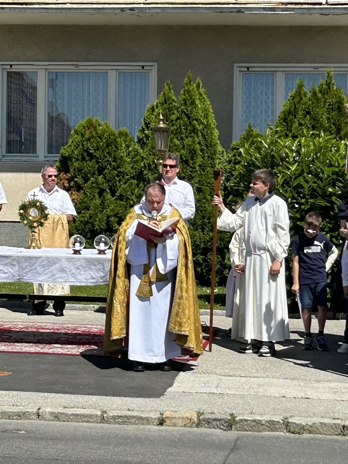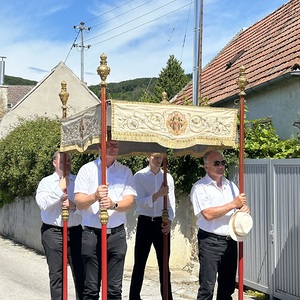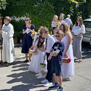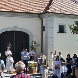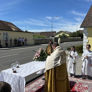 Heute waren wieder die Häuser, Straßen und Plätze im Dorf in der Stadt geschmückt. Nach der Hl. Messe in der Pfarrkirche wurde die Prozession zu den 4 Altären im Dorf von der Winzerkapelle Kleinhöflein, der Freiwilligen Feuerwehr, den Sänger:innen , den Erstkommunionskindern von Kleinhöflein, sowie zahlreichen Kindern und Gläubigen begleitet. Alles zur Ehre Gottes, den wir in Form der Hostie durch unser Dorf trugen.
