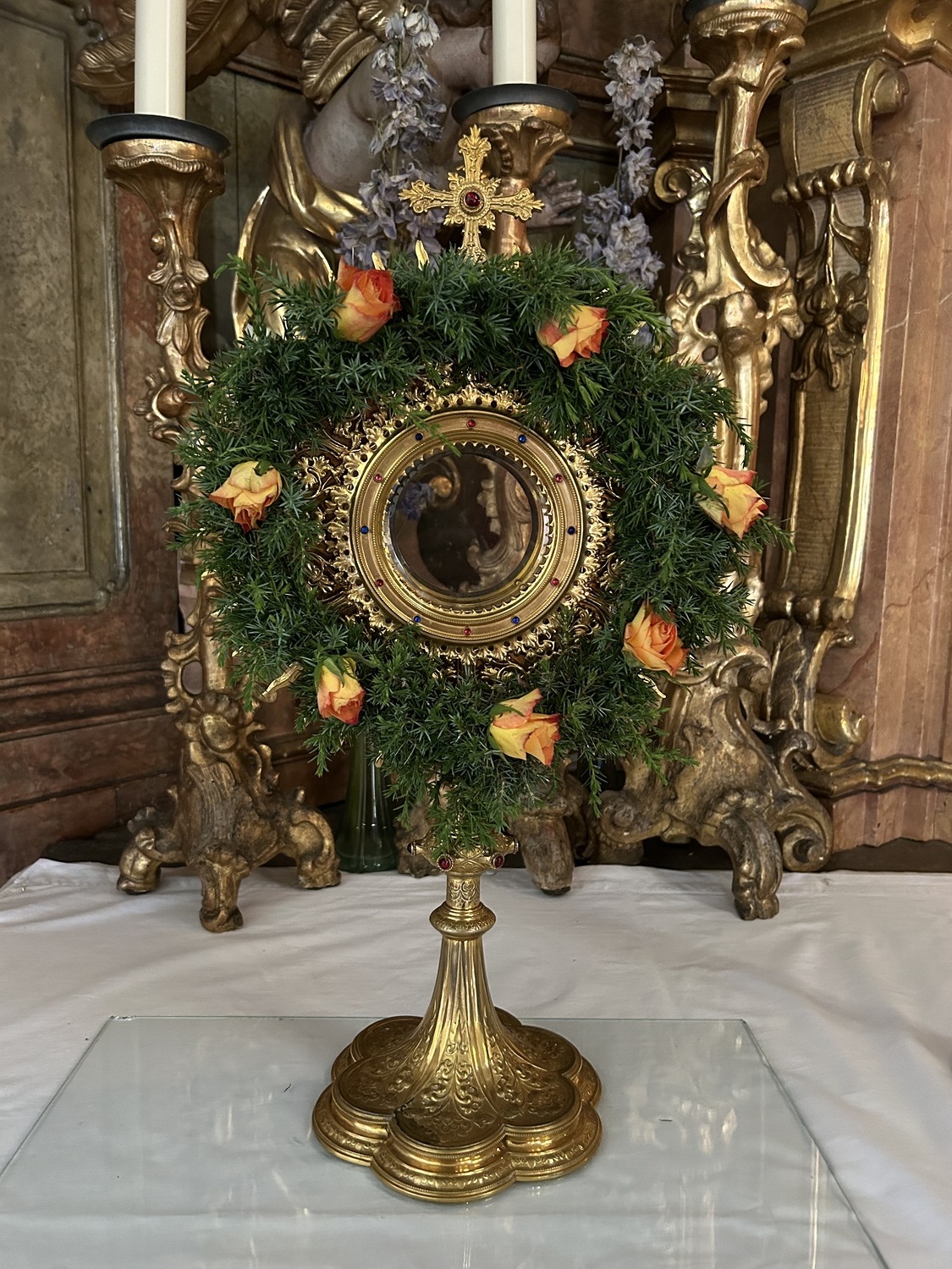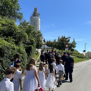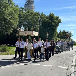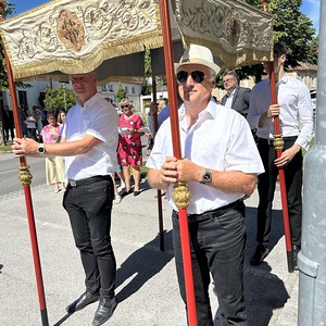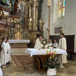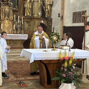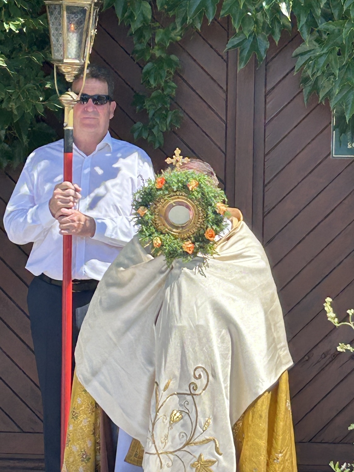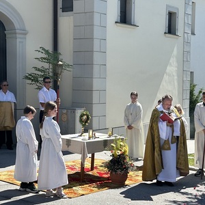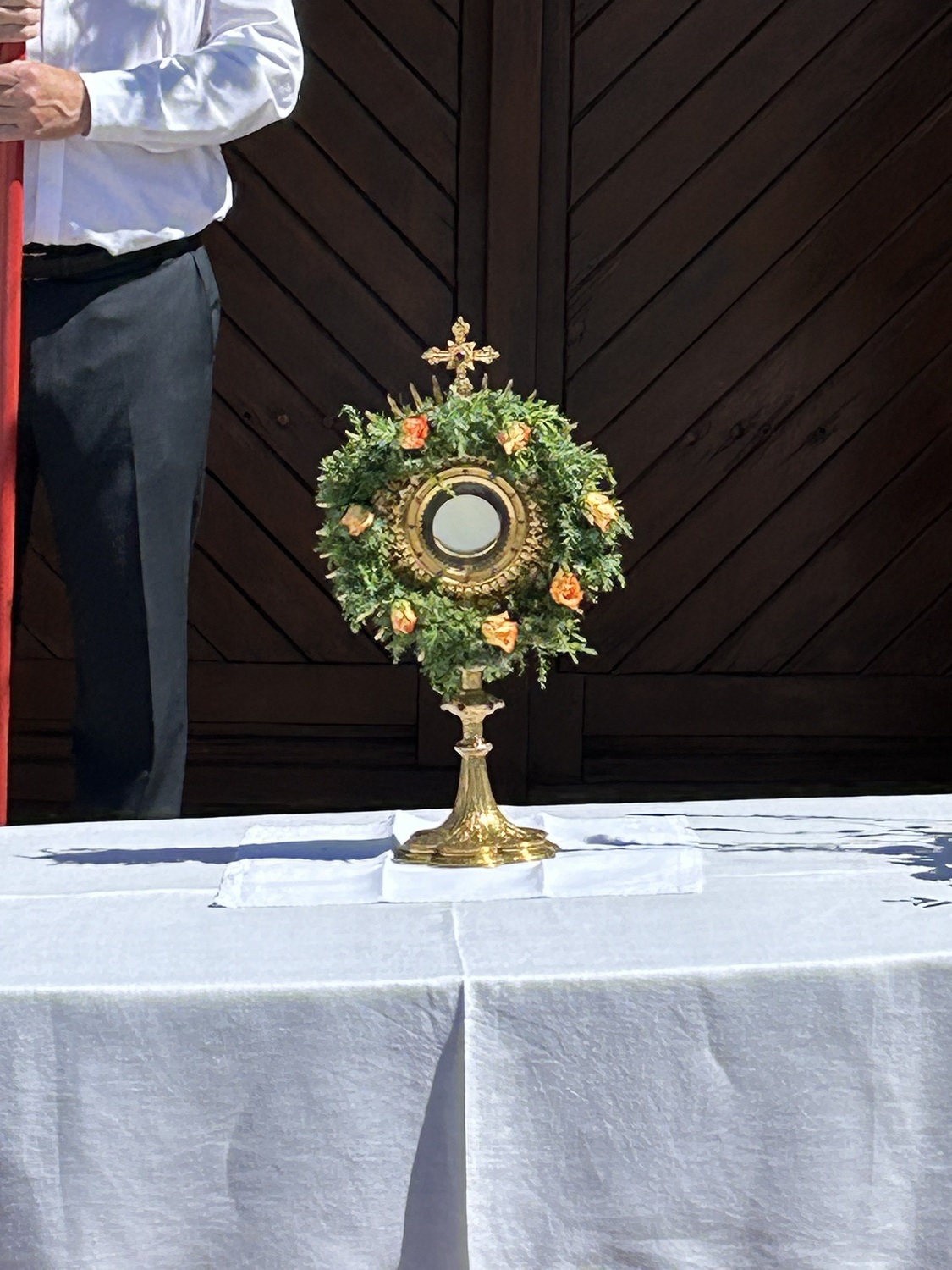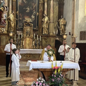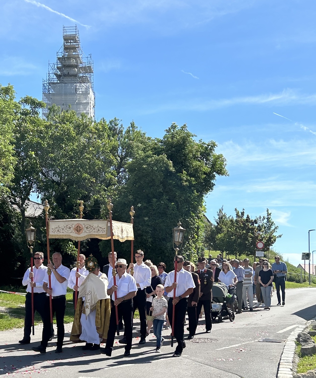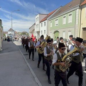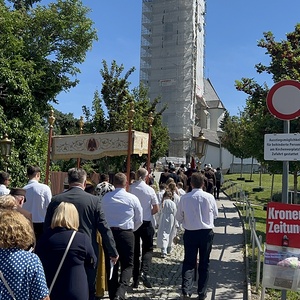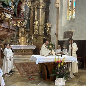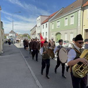 Heute waren wieder die Häuser, Straßen und Plätze im Dorf in der Stadt geschmückt. Nach der Hl. Messe in der Pfarrkirche wurde die Prozession zu den 4 Altären im Dorf von der Winzerkapelle Kleinhöflein, der Freiwilligen Feuerwehr, den Sänger:innen , den Erstkommunionskindern von Kleinhöflein, sowie zahlreichen Kindern und Gläubigen begleitet. Alles zur Ehre Gottes, den wir in Form der Hostie durch unser Dorf trugen.