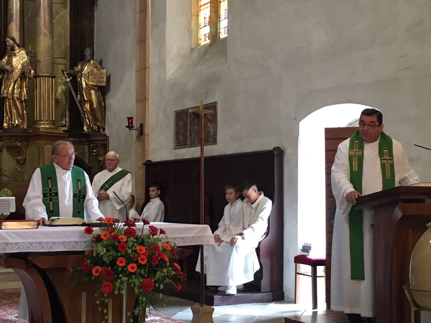Im Rahmen des Gottesdienstes am Sonntag, 2. September 2018 gratulierte Pfarrer Mag. Wilhelm A. Ringhofer Pfarrer Mathias Reiner zu seinem 75. Geburtstag. Die Agape findet beim Erntedankfest am 14. Oktober statt.