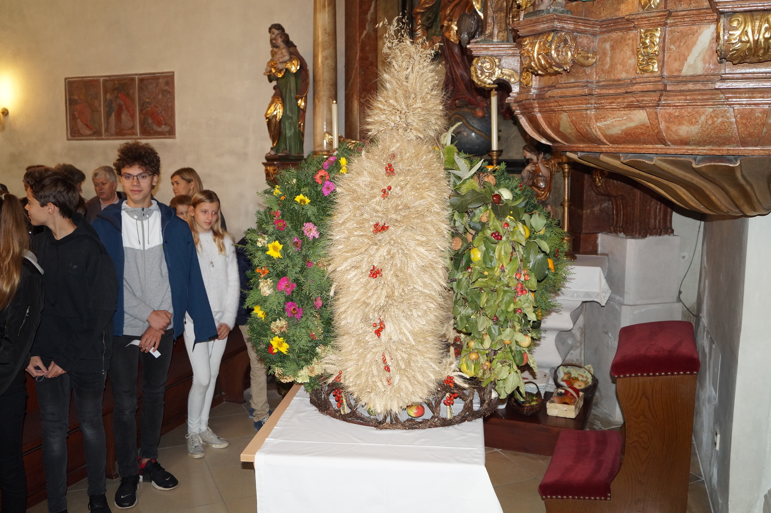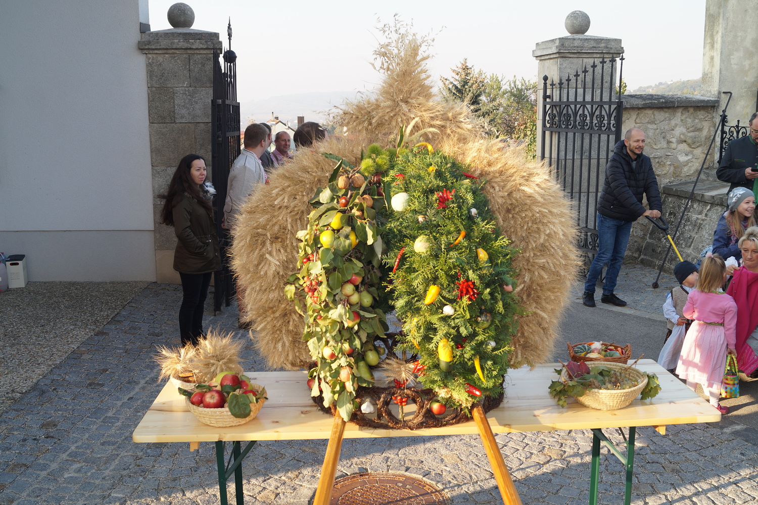 Am Sonntag, 14. Oktober 2018 fand das traditionelle Erntedankfest mit Segnung der Erntedankskrone und anschließender Agape statt. Der Gottesdienst wurde vom Vitus-Chor Kleinhöflein und die Agape von der Winzerkapelle Kleinhöflein musikalisch umrahmt. Bei der Agape wurde auch noch auf den 75. Geburtstag von Pfarrer i.R. Mathias Reiner angestoßen.
