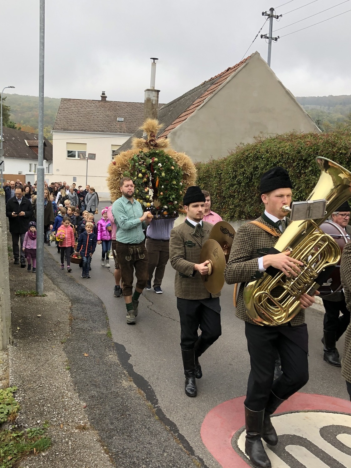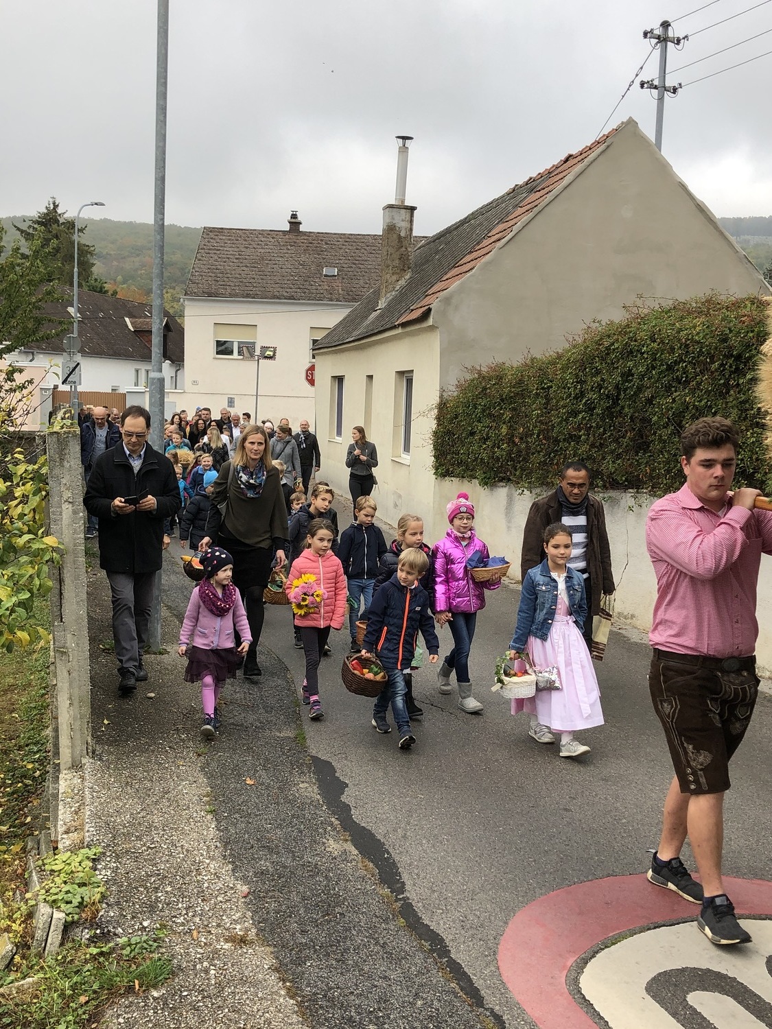 Schön herbstlich geschmückt und mit einer großen Erntedankkrone wurde diese Feier am Sonntag, dem 20. Oktober in der Pfarrkirche Kleinhöflein gestaltet. Orgel, Kirchenchor, Pfarrverband und Blasmusikkapelle trugen musikalisch zur Feier bei. Viele feierten das Fest des Dankes mit. Die Kinder und die Volksschulkinder, die sich auf den Weg der Vorbereitung zur Erstkommunion machen, brachten ihre bunten Obstkörbchen zum Altar.