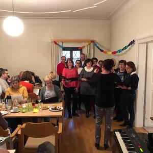Der Vitus-Chor Kleinhöflein lud zum musikalischen Kaffeekränzchen in den Pfarrhof. Beim bunten Nachmittag wurde in gemütlicher Runde bei Kaffee und Kuchen gemeimsam gesungen.