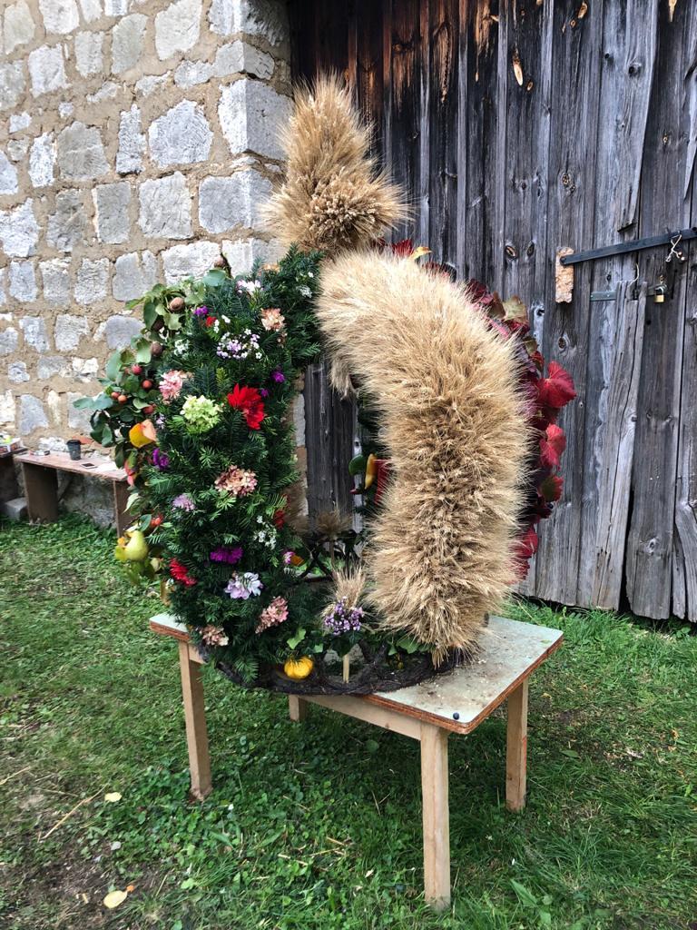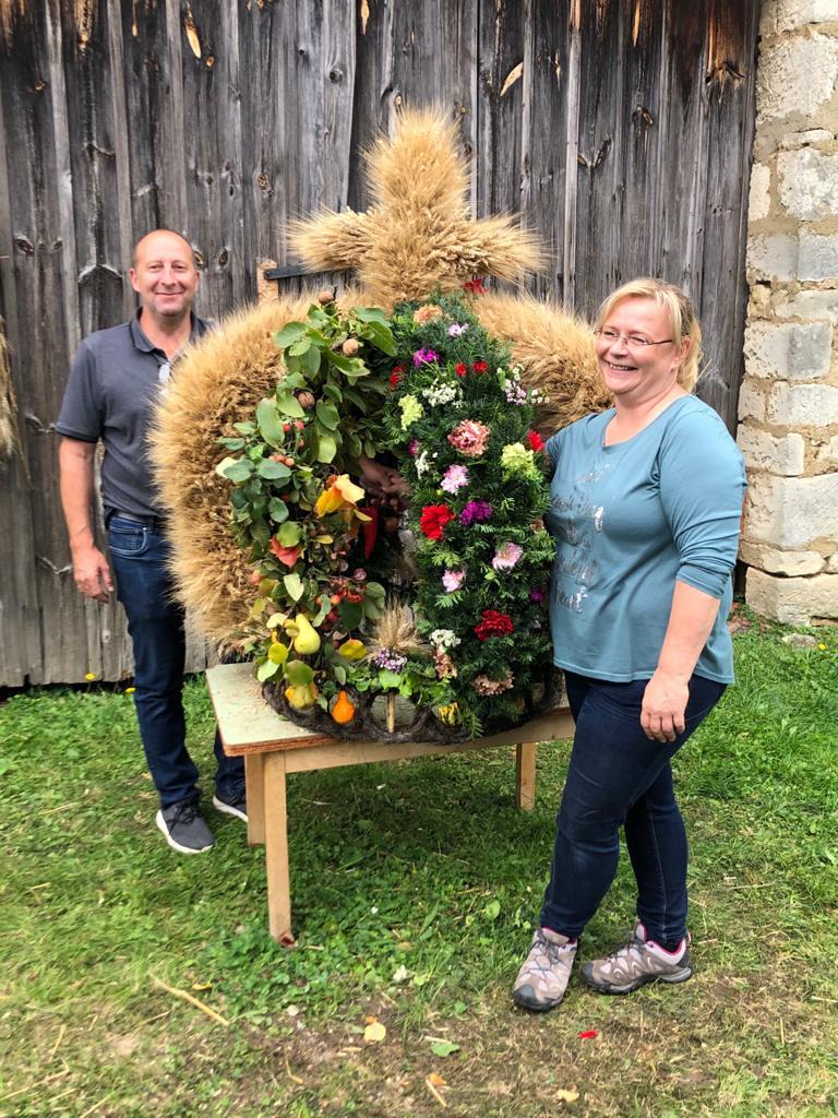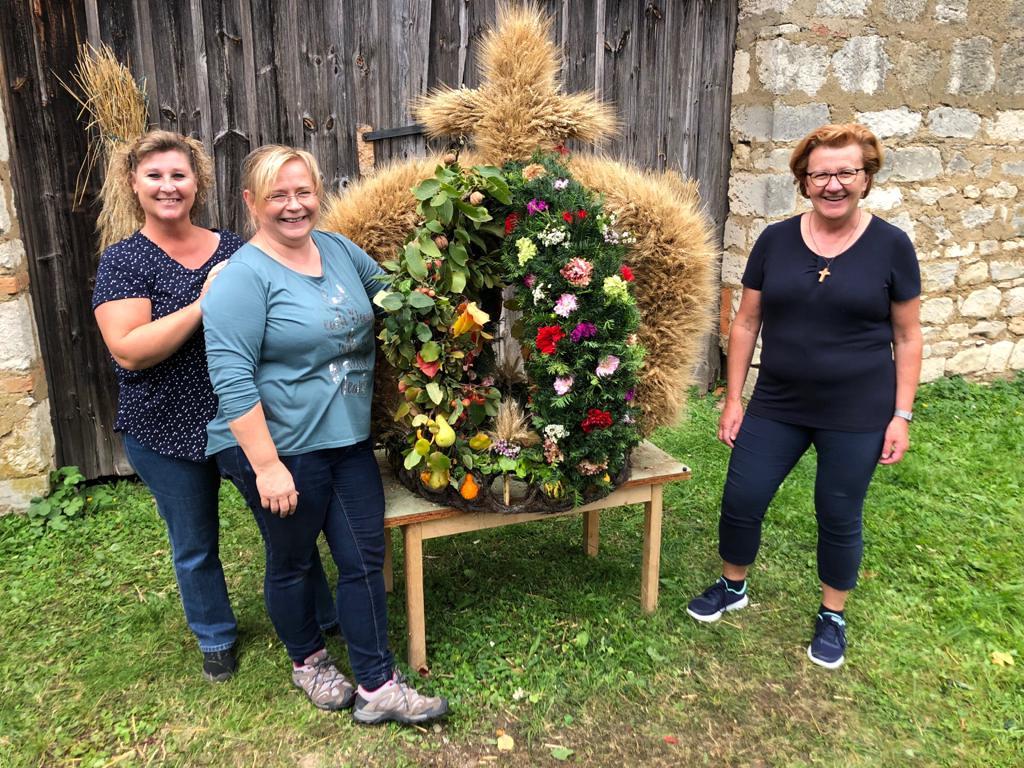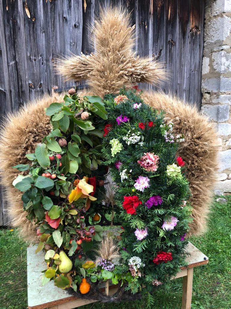 Traditionell ein besonderer Blickfang, war die große Erntedank-Krone, welche unter der Leitung von Birgit Talian mit Hilfe von Regina Lehner, Schwester Evelin, Walter Gaal, Resi Hofleitner und Regina Kaiser gefertigt wurde.