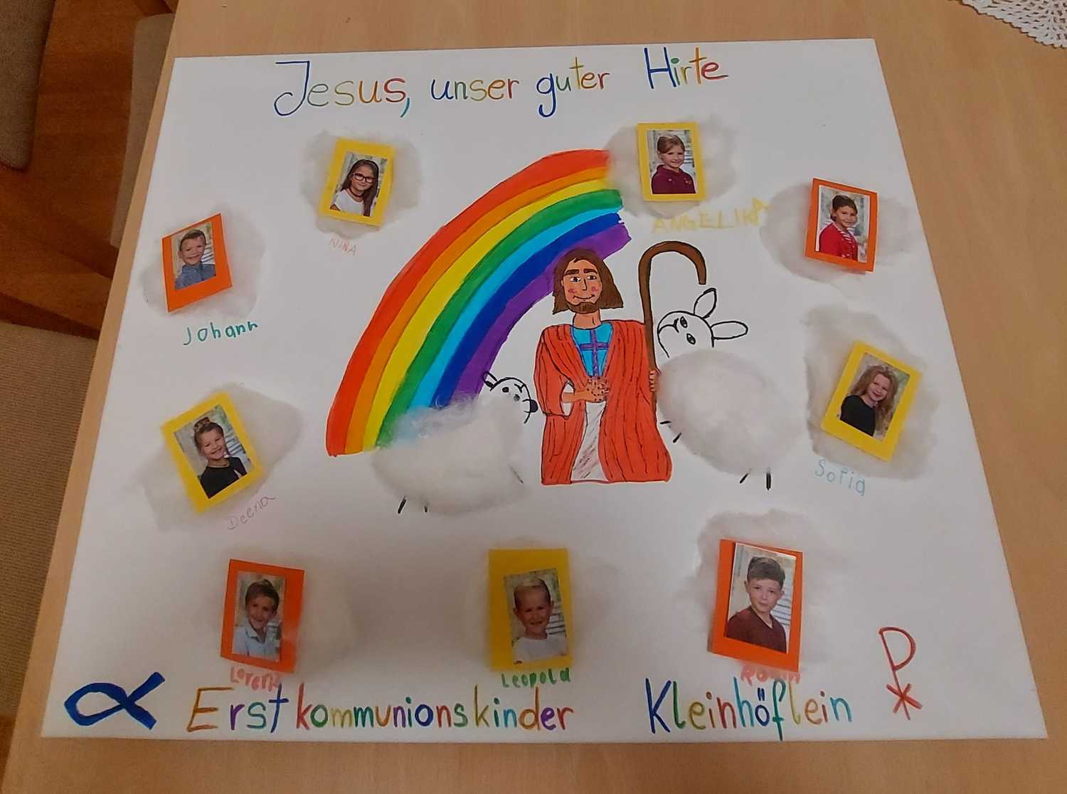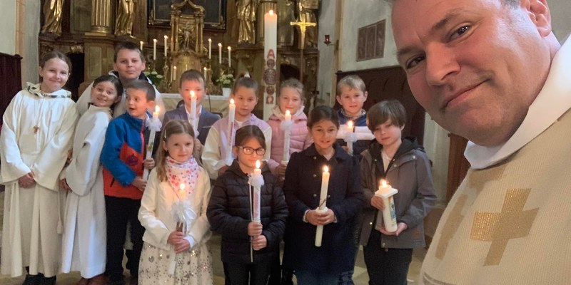 Am Weißen Sonntag bzw. seit Papst Johannes Paul II auch Barmherzigkeitssonntag genannt, fand die Tauferneuerung unserer Erstkommunionskinder statt. Mit großer Begeisterung gestalteten sie den Gottesdienst gemeinsam mit den Tischeltern und Pastoralassistent Fred mit. Pfarrer Alexander erzählte von der heiligen Faustyna Kowalska, nach welcher der Barmherzigkeitssonntag genannt wurde. Sie beschrieb nach einer Erscheinung den Barmherzigen Jesu mit weißem Gewand und 2 großen Strahlen, welche aus seinem geöffneten Herzen kamen und mit der Unterschrift: Jesu, ich vertraue auf dich.