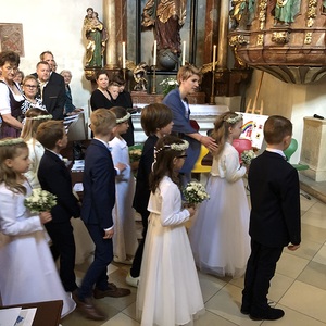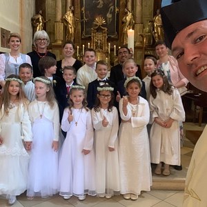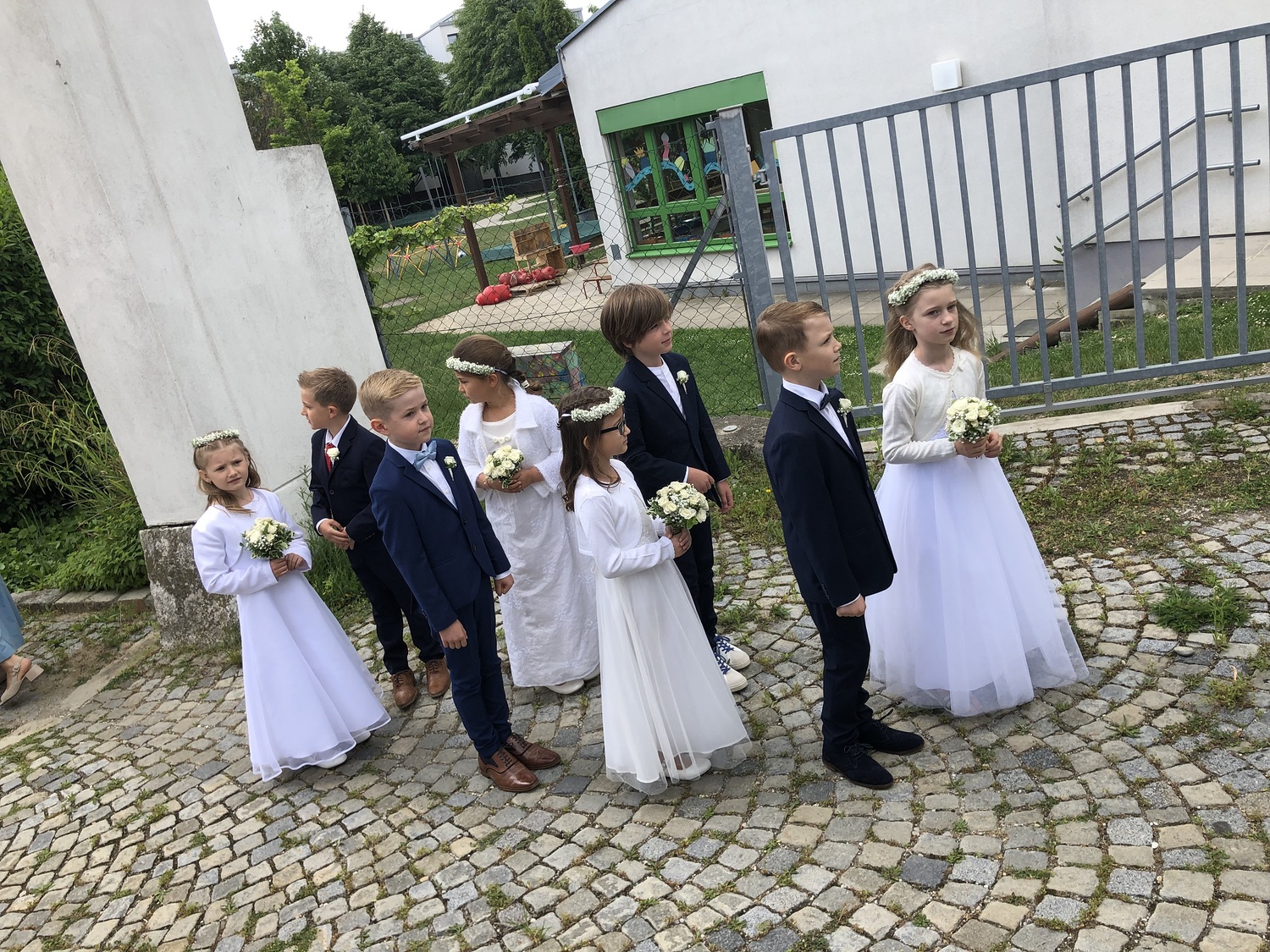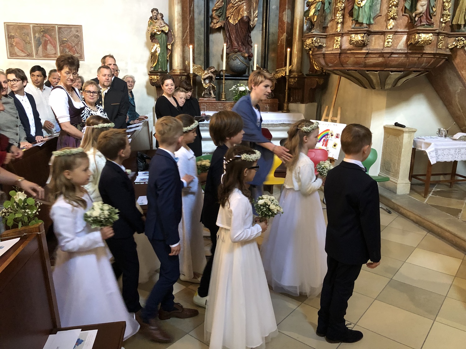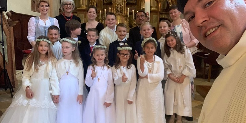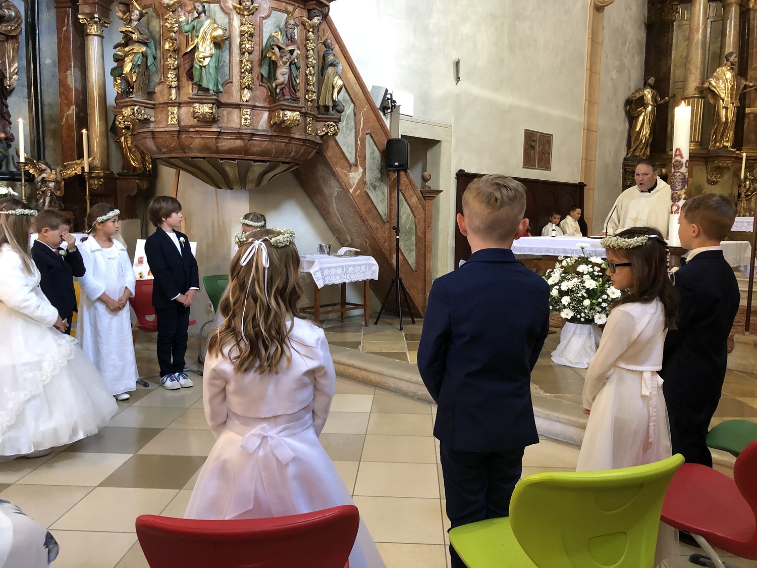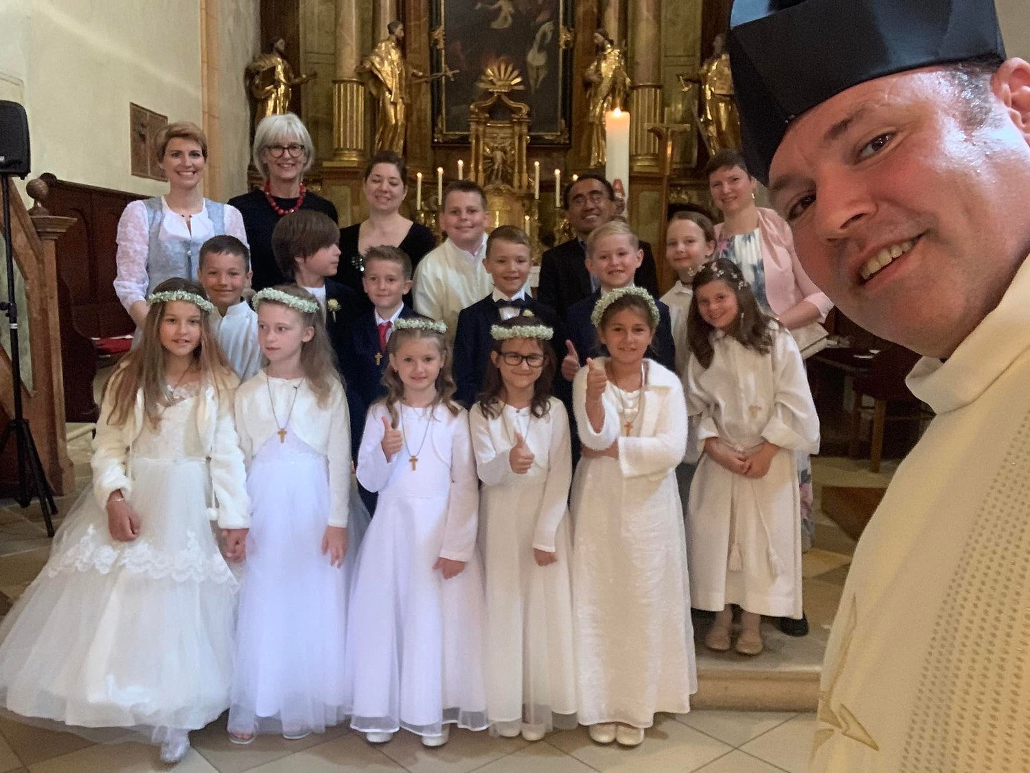 Am Samstag, den 28. Mai 2022, feierten 9 Kinder ihre Erstkommunion. Mit einem festlichen Zug, ging es begleitet von der Winzerkapelle Kleinhöflein, vom Pfarrhof in die Pfarrkirche. Bereits vor einigen Monaten haben sie sich auf den Weg gemacht und waren gemeinsam mit ihren Eltern, Lehrern, Tischeltern und den Mitarbeitern der Pfarre unterwegs.