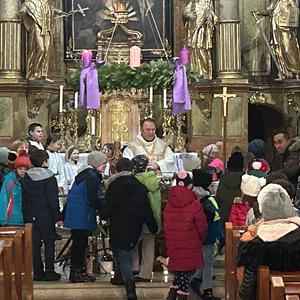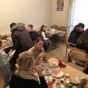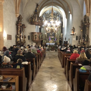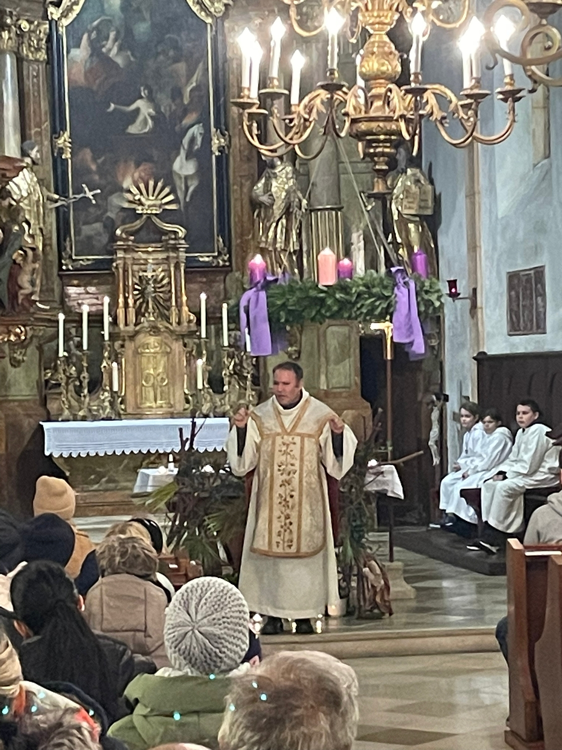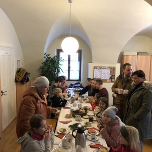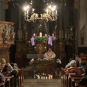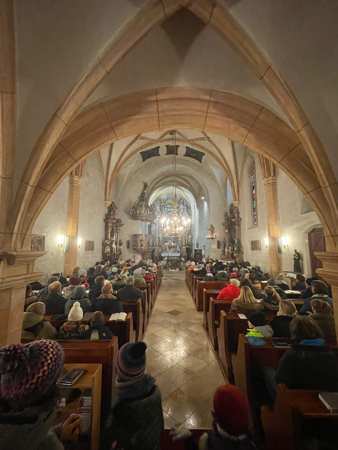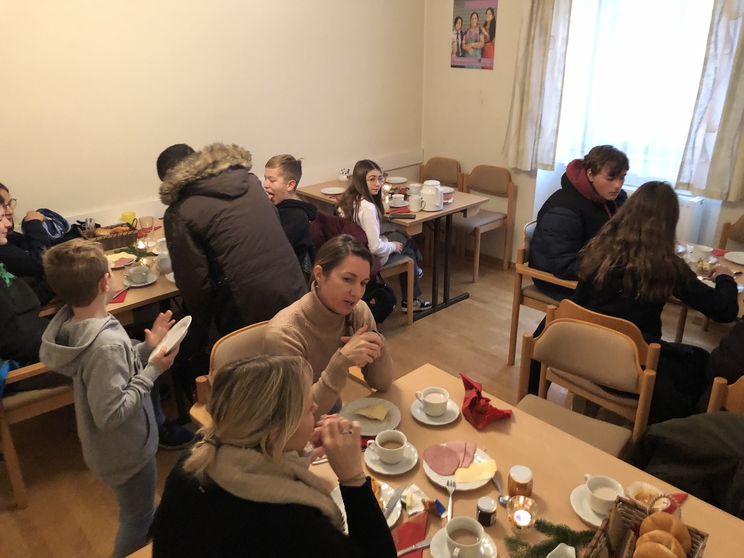 Familien-Rorate mit weit über 200 Mitfeiernden in der übervollen Kleinhöfleiner Kirche. Im Anschluss wurde in den Pfarrhof zum gemeinsamen Frühstück eingeladen.