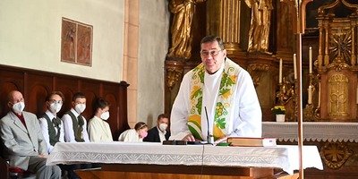 Im Rahmen eines Versöhnungsgottesdienstes feierte am 22. Juni 2021 Pfarrer Willi gemeinsamt mit den 14 Erstkommunion-Kindern und den Tischeltern die Tauferneuerung.