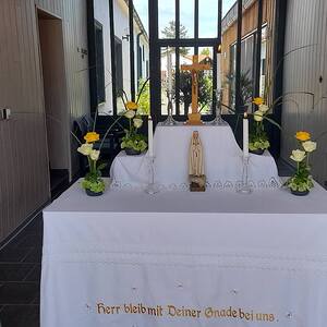 Fronleichnam fand heuer am 30. Mai 2024 statt. Nach der heiligen Messe führte eine Prozession auf der Hauptstrasse zu den vier Altären, Pfarrmoderator Jahns trug das Allerheiligste in der festlich geschmückten Monstranz, das von einem "Himmel" (Stoffbaldachin) beschirmt wurde. Die Prozession wurden von der Feuerwehr und dem Jungenblasmusikverein begleitet, die Erstkommunionkinder streuten Blumen vor dem Allerheiligsten. Früher war es üblich, entlang der Straße grüne Birken aufzustellen,