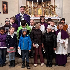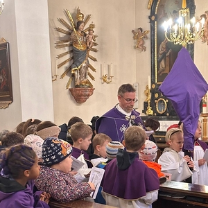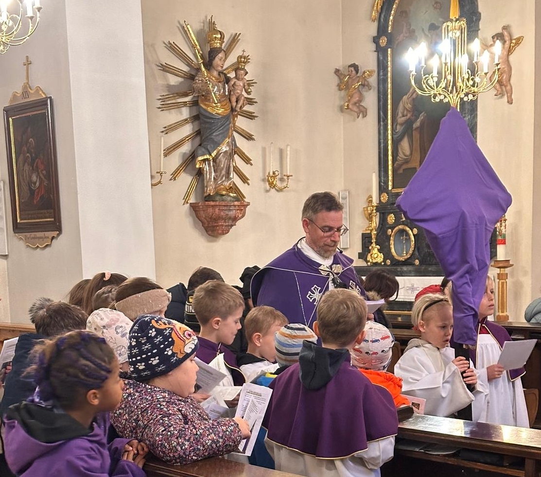Pfarrmoderator Mag. Stefan Jahns betete mit Kindern den Kreuzweg.