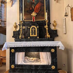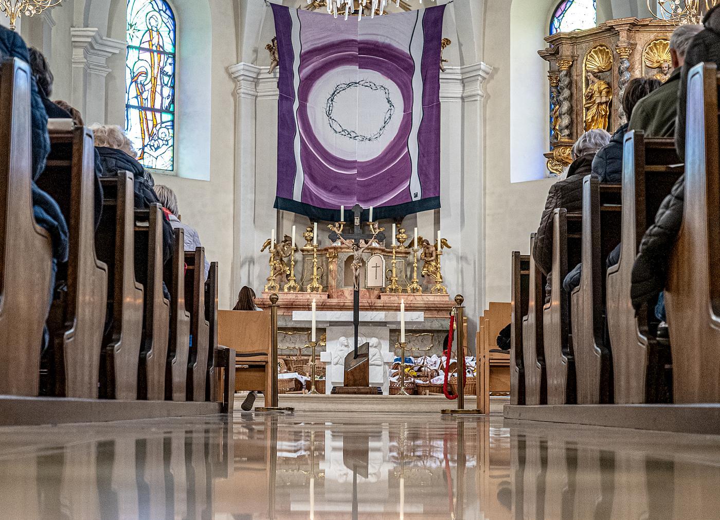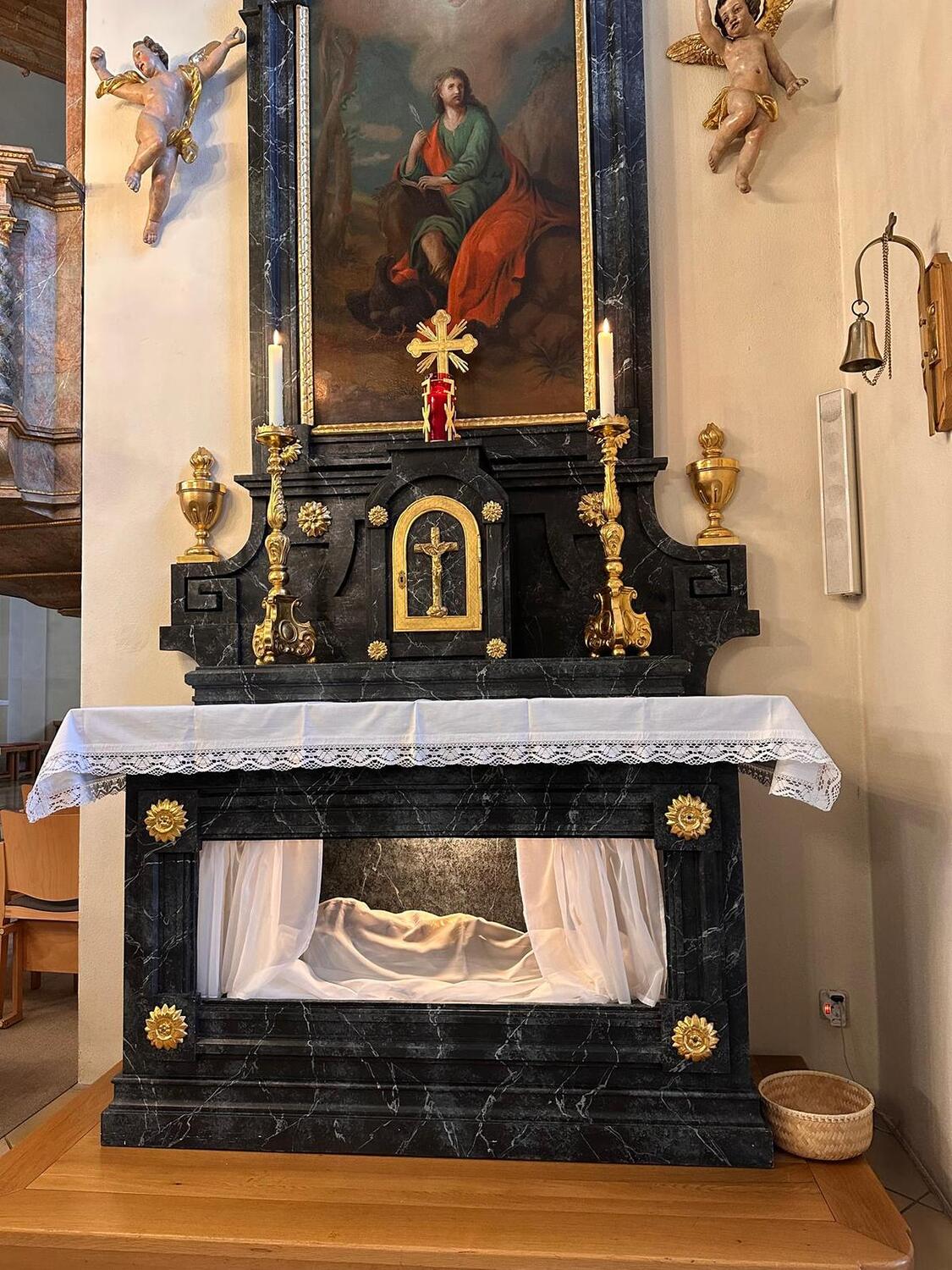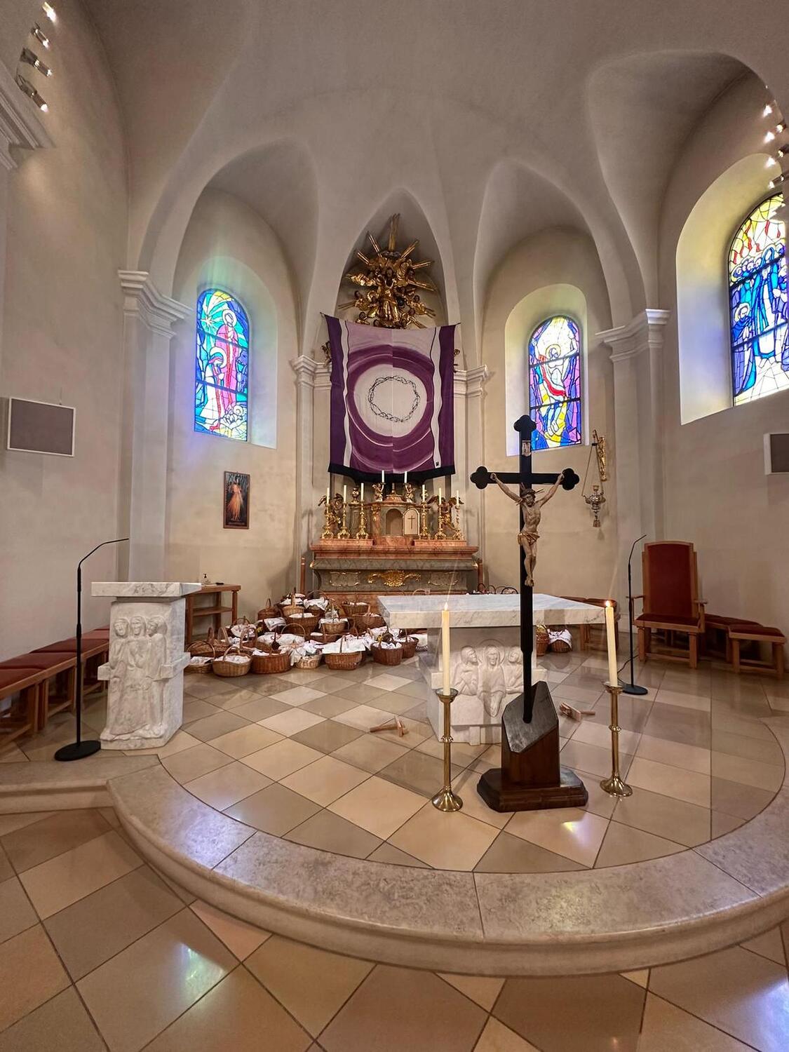 Am Karsamstag können die Gläubigen das Heilige Grab in der Pfarrkirche aufsuchen und beten. Um 12.00 Uhr gab es das gemeinsame Gebet vor dem Heiligen Grab und die Segnung der Osterspeisen.
