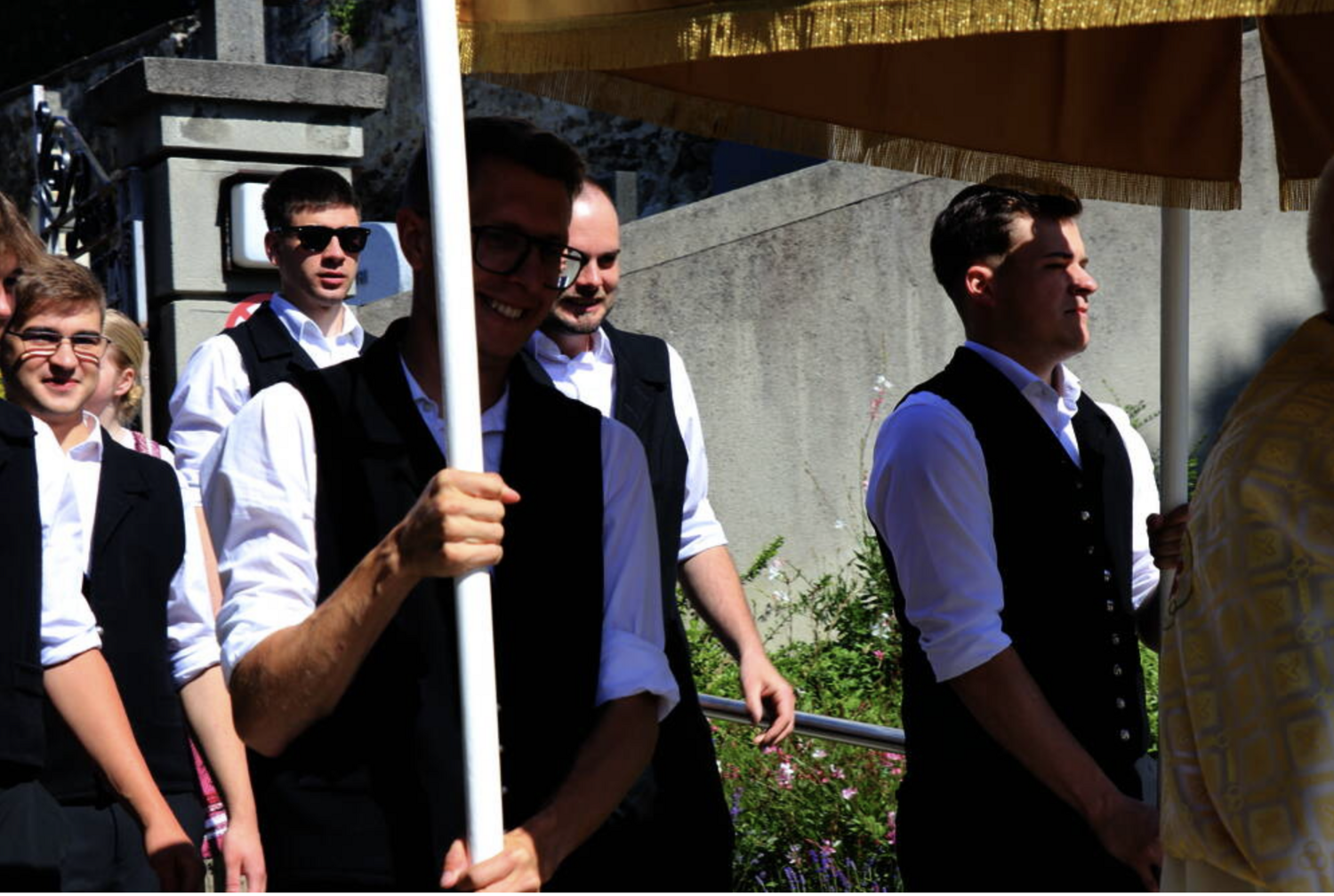Vielen Dank den Ministrant*innen, den Mesnerinnen, dem Kirchenchor mit den Kantor*innen, den Erstkommunionkindern mit ihren Tischmüttern, den Robischmädchen und -burschen, dem Musikverein, dem Gesangverein, der Feuerwehr, dem Roten Kreuz und allen, die mitgegangen sind.