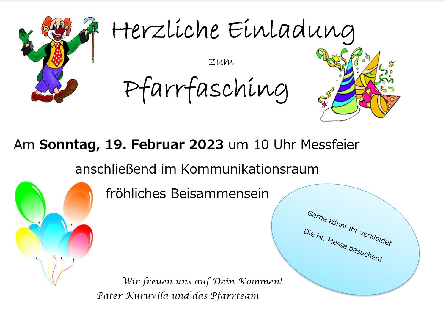 Bereits während der Hl. Messe konnte man erkennen, dass dieser Faschingsonntag ein besonderer Tag werden sollte. Verkleidete Gläubige in den Kirchenbänken, verkleidete Pfarrgemeinderäte, "seltsam" gekleidete Ministranten und eine launige, aber durchaus nachdenklich stimmende Predigt von Diakon Dr. Peter Zotti, stimmten auf den Pfarrfasching ein.