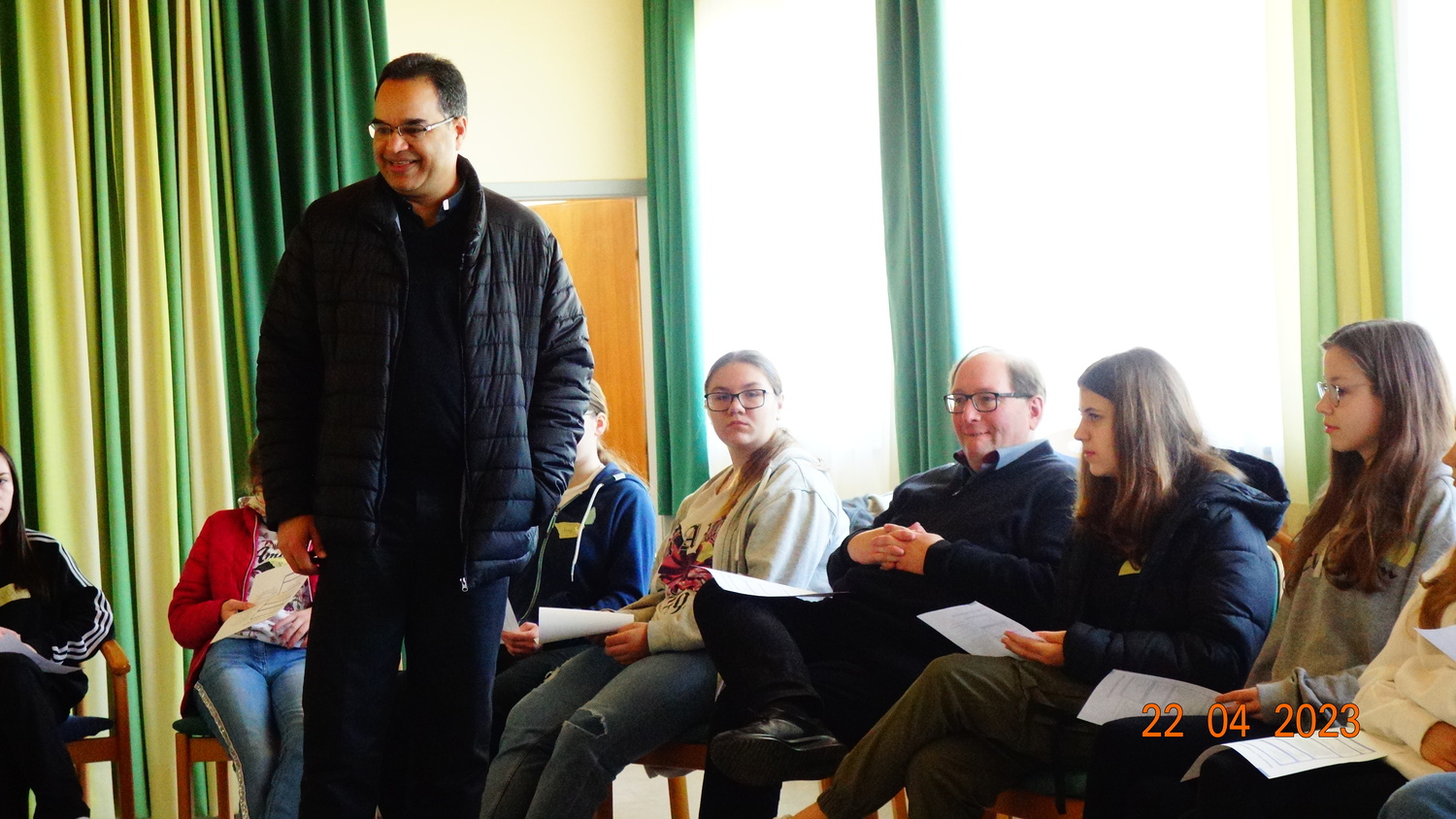 Am 22. April fand der 5. Firmvorbereitungsvormittag statt. Diesmal war - neben P. Kuruvila - auch unser Firmspender Pfarrer Roman Schwarz anwesend. Zu Beginn wurde der Ablauf der Firmung sowie die musikalische Gestaltung erörtert. Erfreulicherweise haben sich sie Firmlinge bereit erklärt, die Messe mitzugestalten.