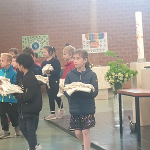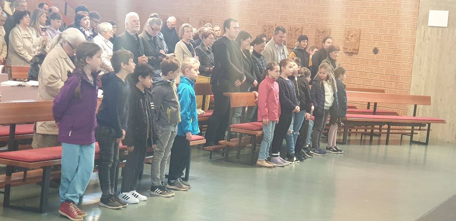 Gemeinsam mit allen Kindern sangen die Erstkommunionkinder das "Vater unser" am Altar.