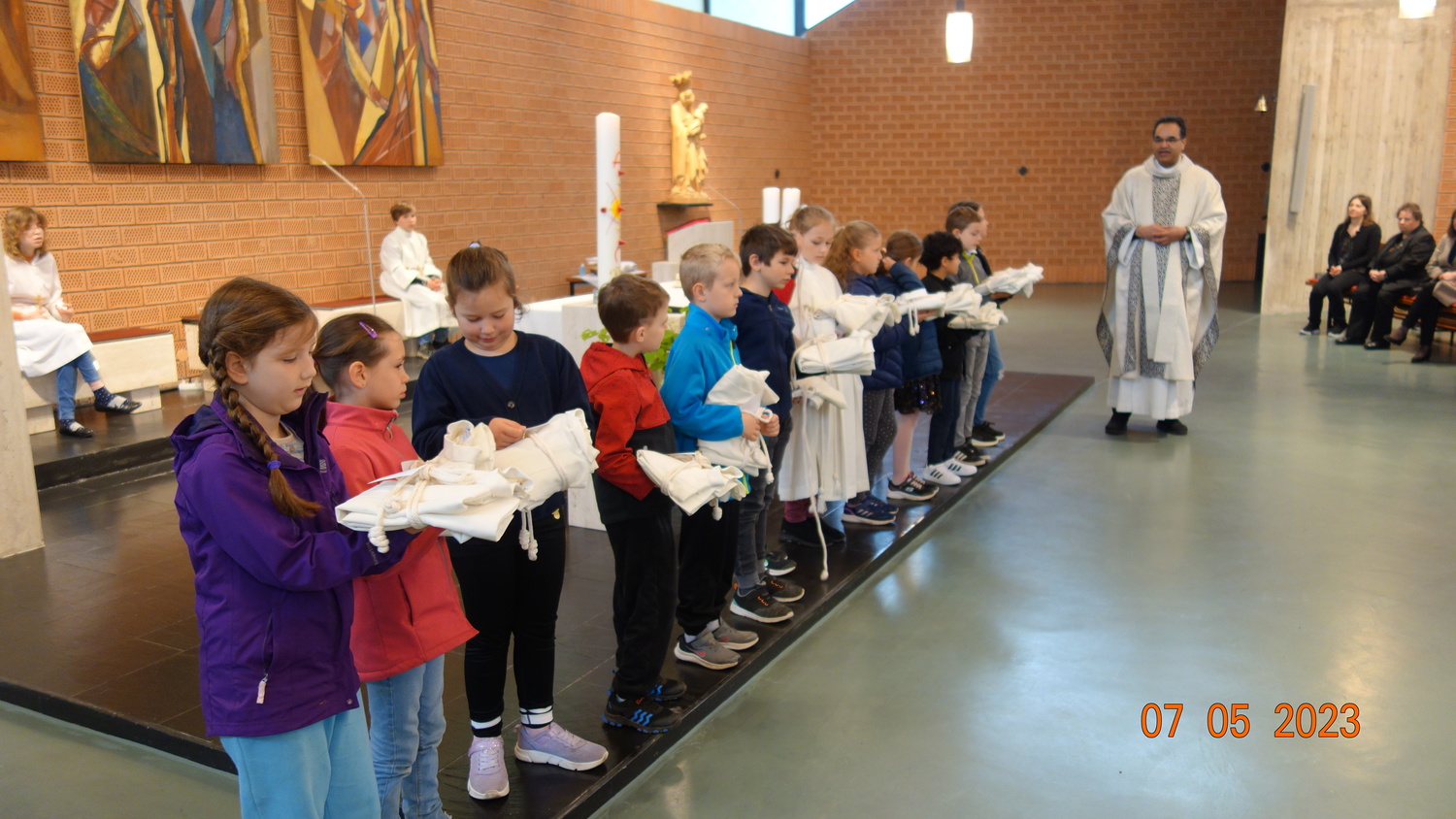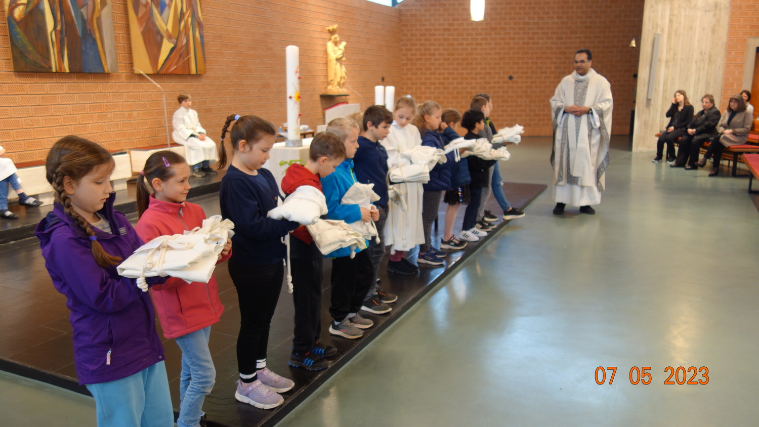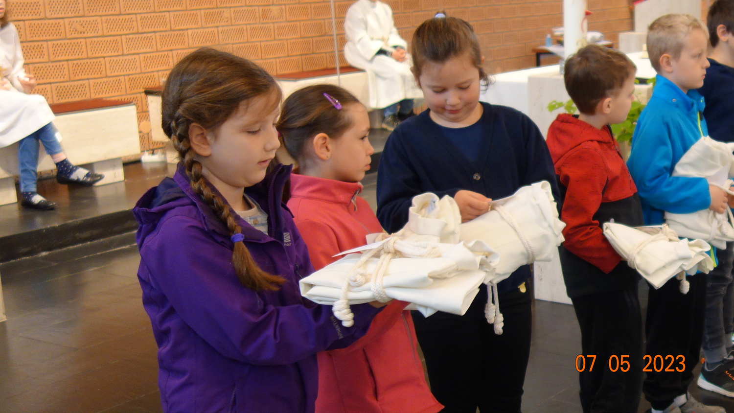 Die Erstkommunionkinder nahmen die Kutten freudig entgegen und übergaben sie anschließend an ihre Eltern.