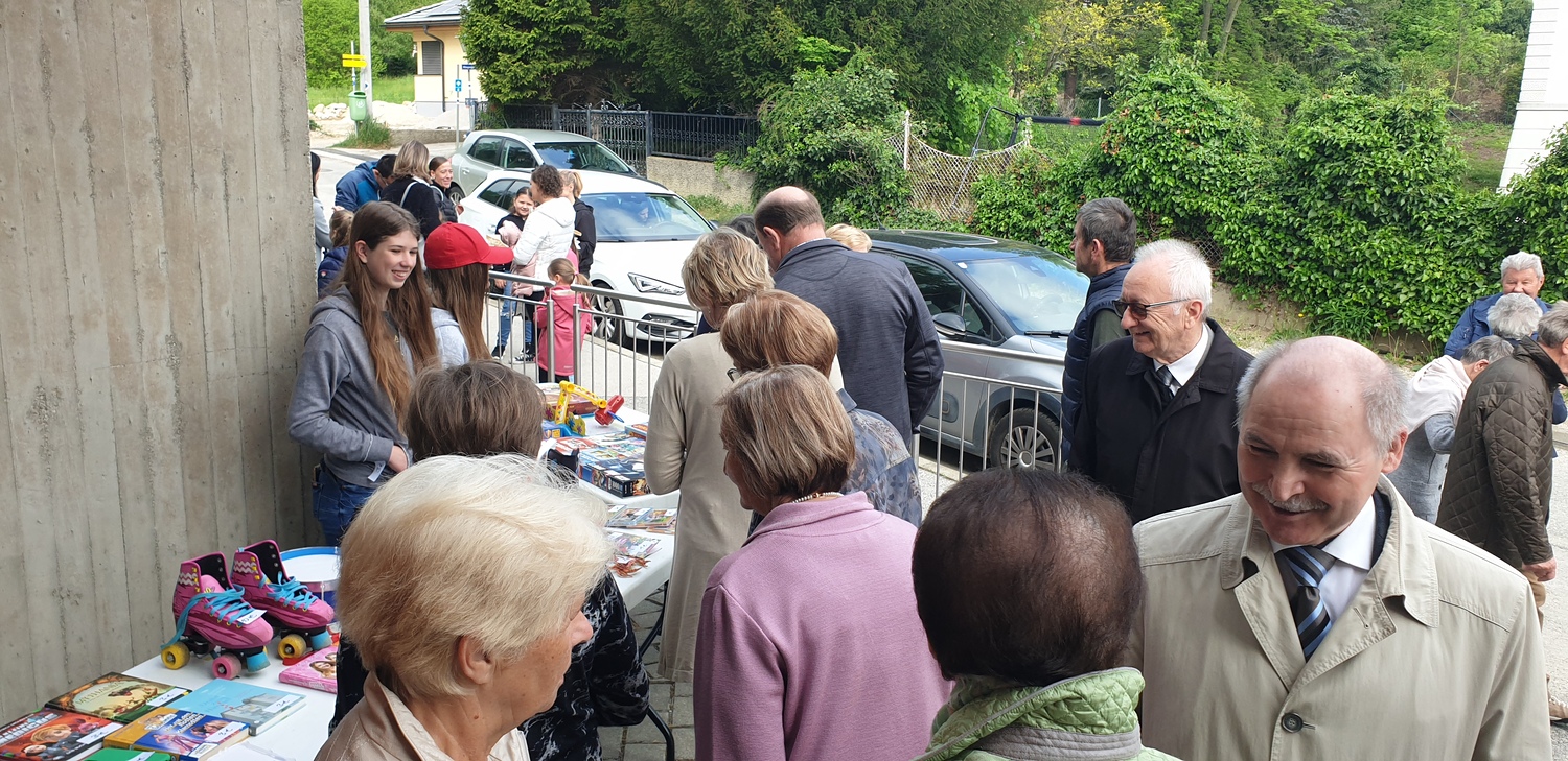 Es herrschte reger Betrieb am Flohmarkt der Firmlinge, denn die Firmlinge boten sehr viele sinnvolle Gegenstände an. Darüber hinaus wollten manche Kirchenbesucher, vom Spielzeug bis zu Gebrauchsgegenständen, Sachen am Flohmarkt erwerben, um so die Firmlinge bei ihrer Benefiz-Aktion zu unterstützen.