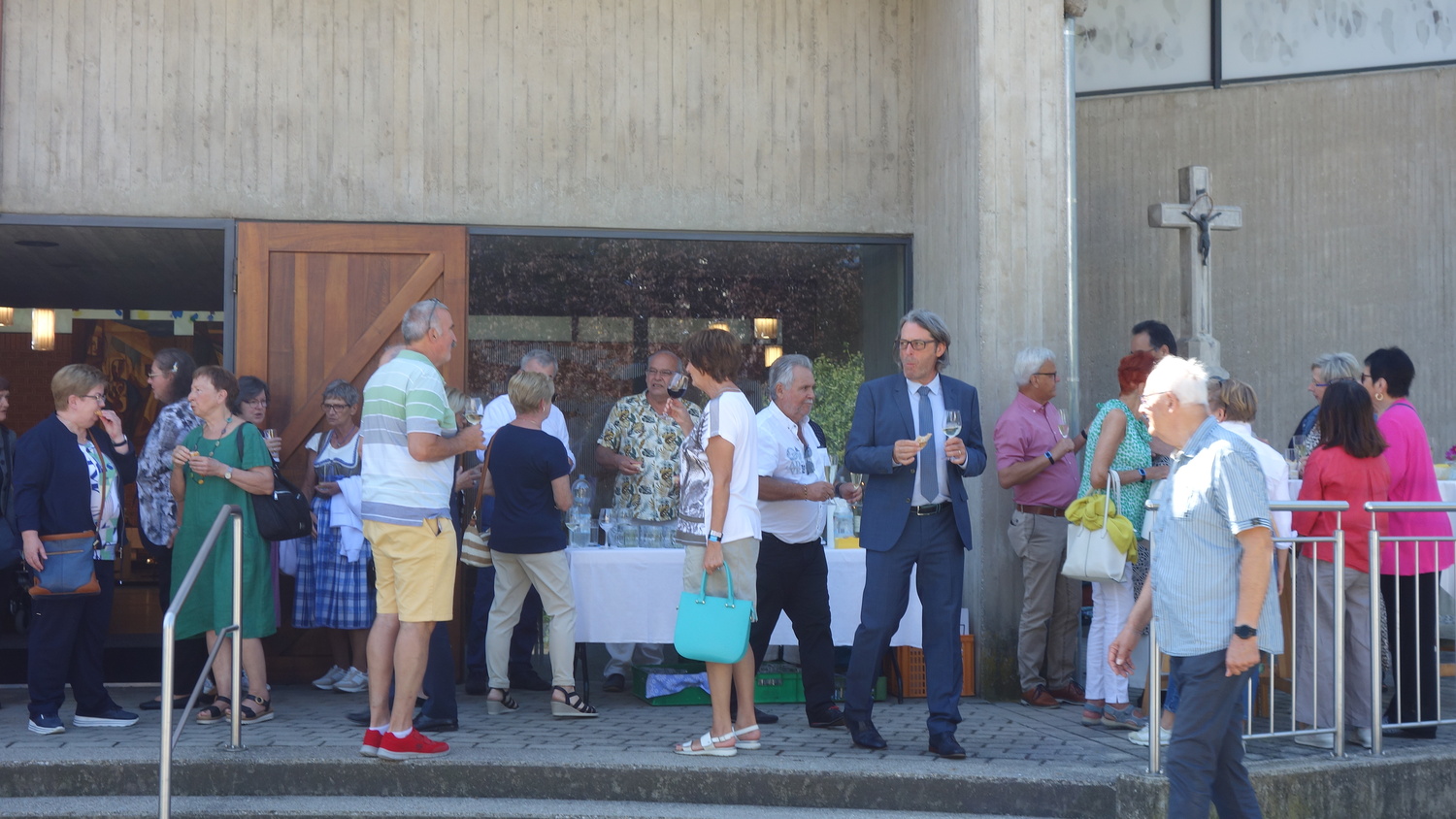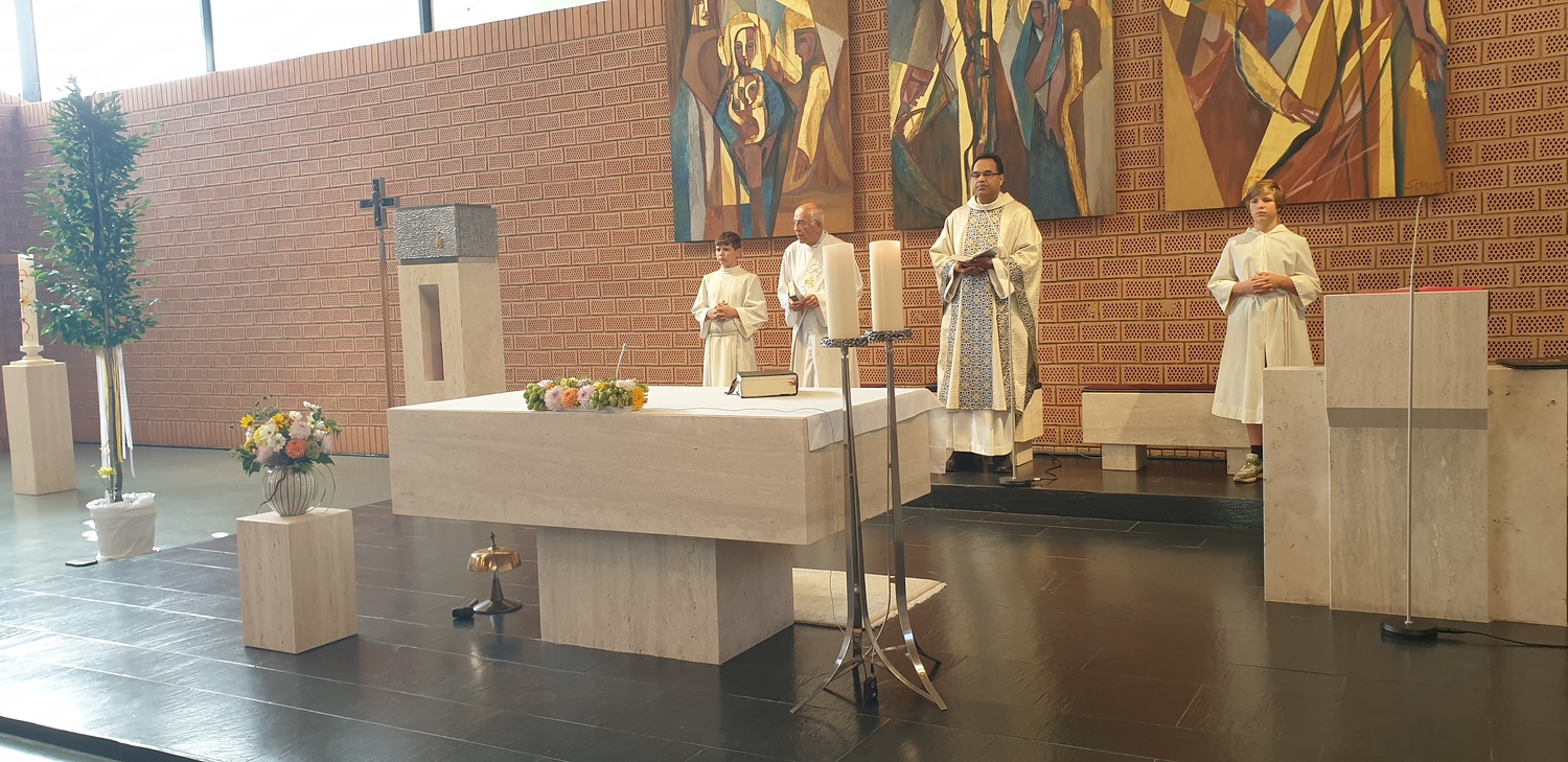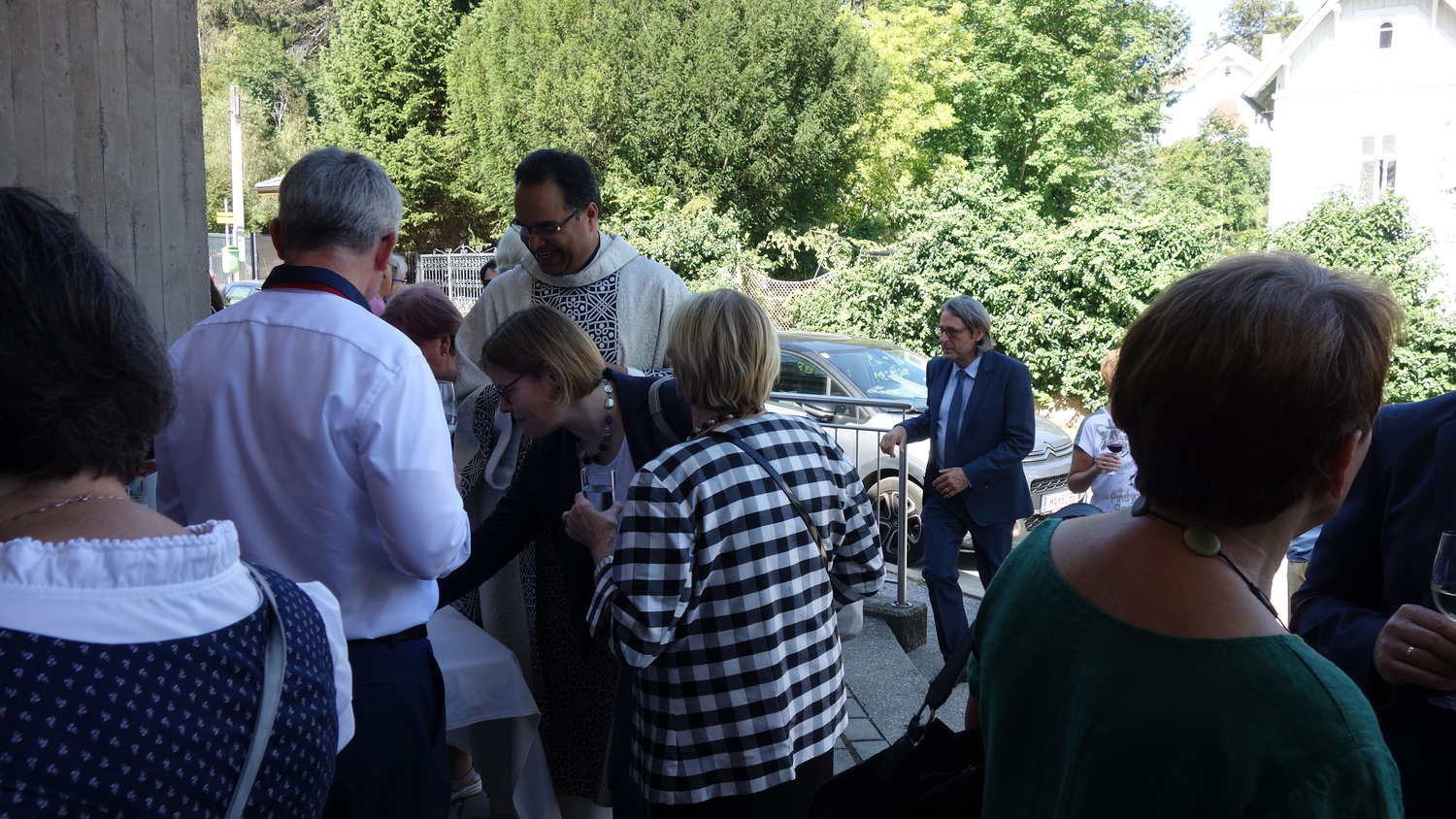 Im Anschluss an die Hl. Messe wurde zu einer Agape geladen, die sich großen Zuspruchs erfreute und bei der es den Gläubigen möglich war mit dem Jubilar zu sprechen. So war es auch den Teilnehmern an der Hl. Messe und der Agape möglich Pater Kuruvila zu seinem Jubiläum zu gratulieren.